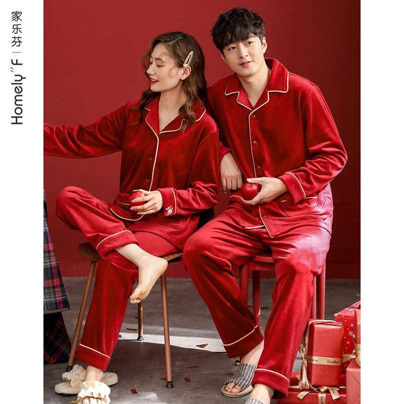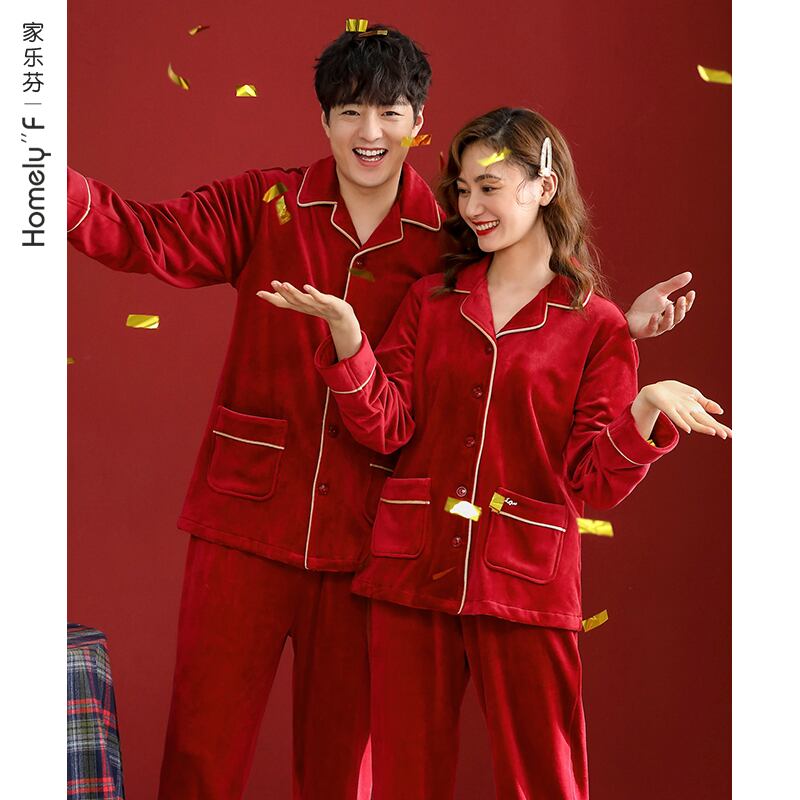 カップルパジャマ女性の秋と冬のサンゴのベルベットが厚くなり、ベルベットのフランネルの家庭服の男性の出生年の大きな赤 jial10454114360
