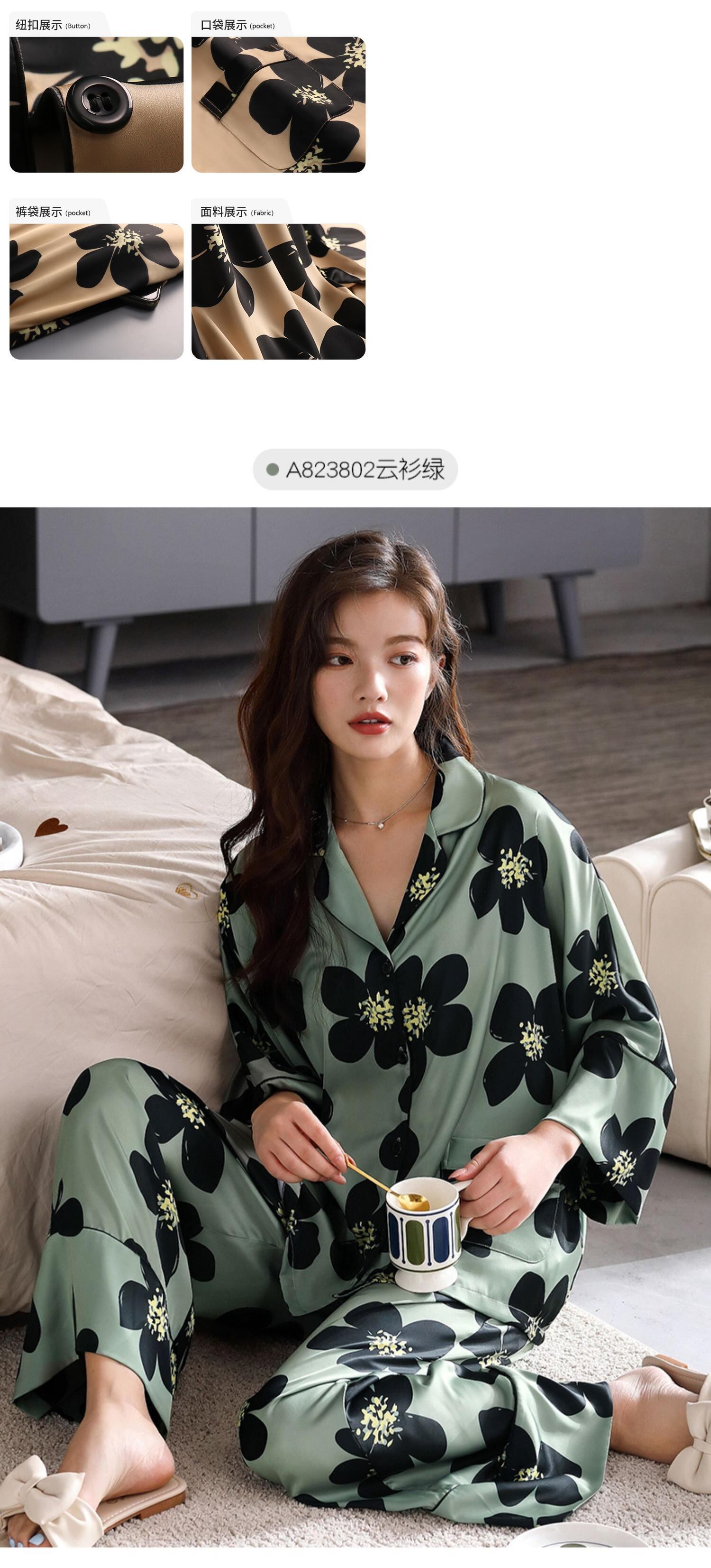 パジャマ春と秋秋と秋薄いシルクアイスシルク長袖ホームウェアシミュレートされたシルクプレミアムセンススーツ jial37603405961