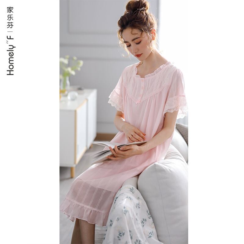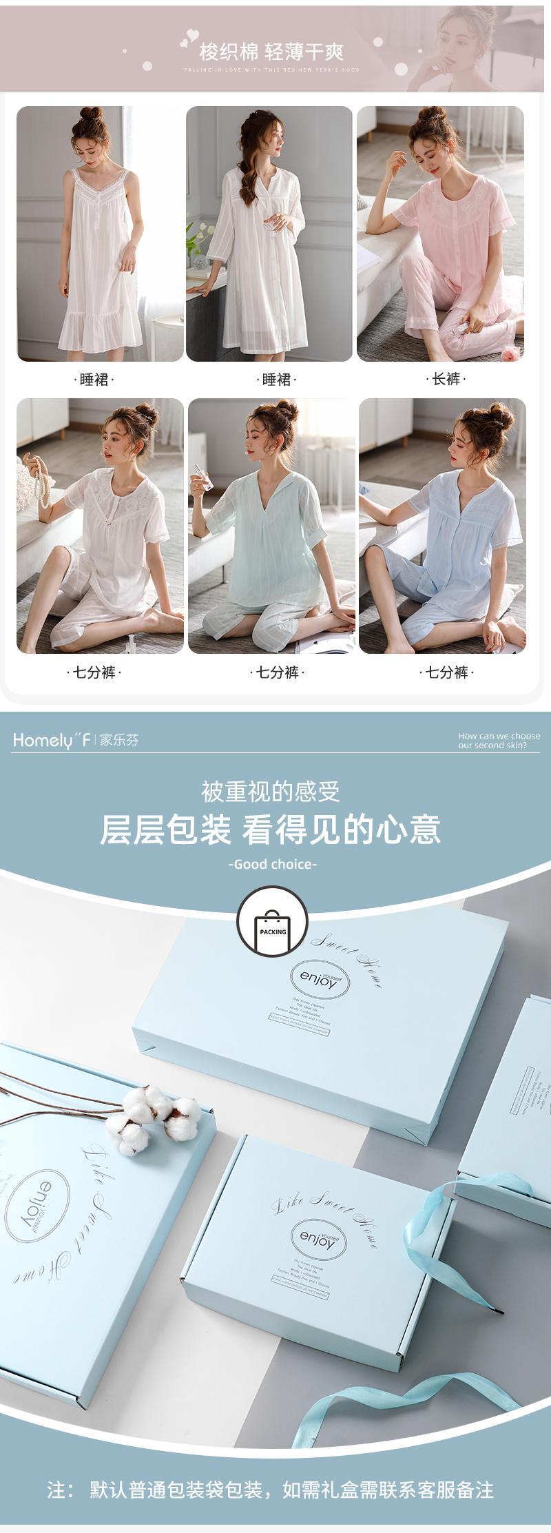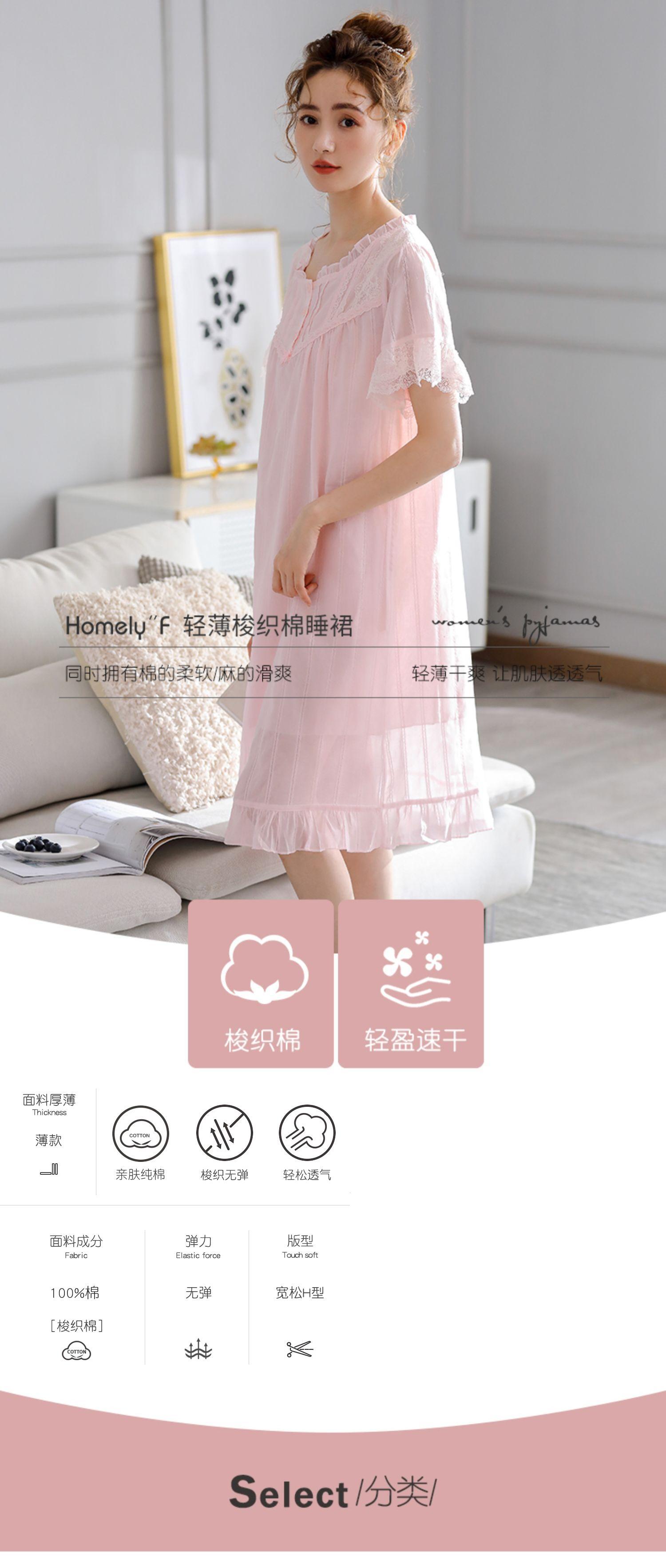 織り綿ガーゼネグリジェレディースパジャマ夏夏綿半袖綿薄手の家庭用品ロングプラスサイズ jial74648078398