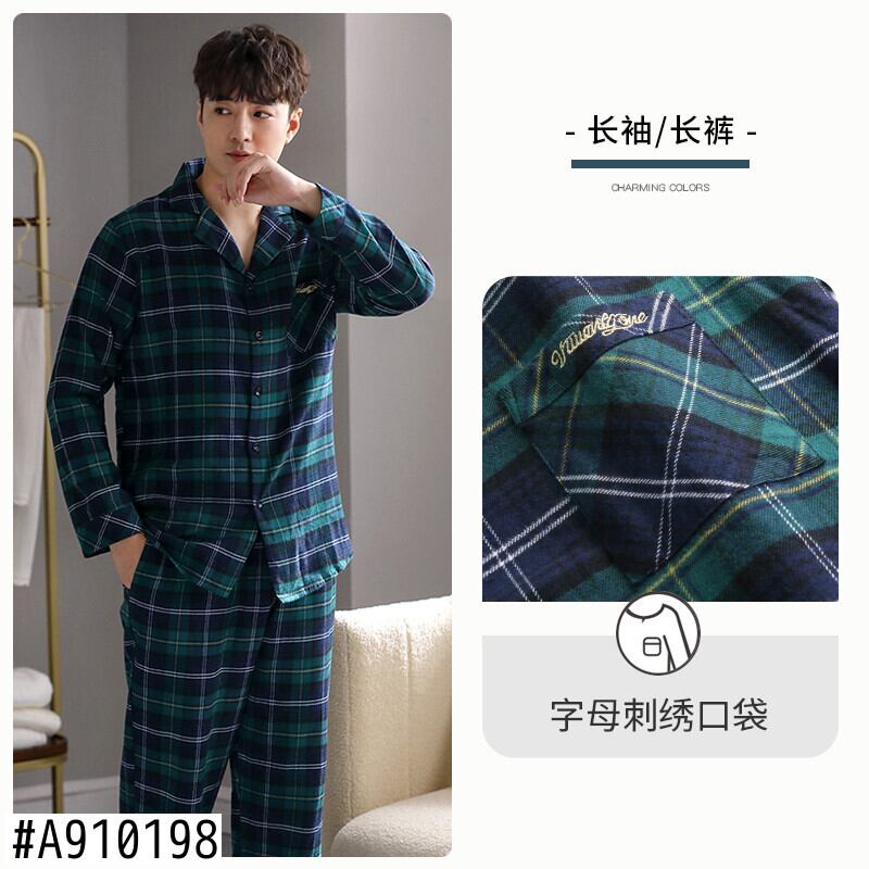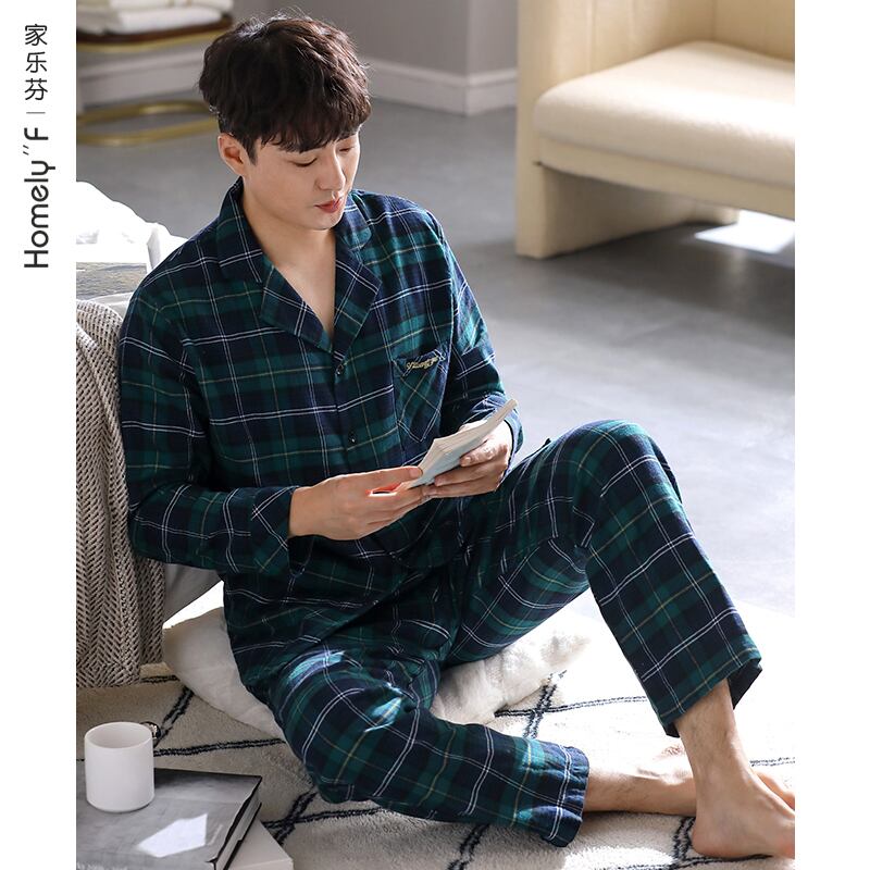 綿ガーゼ起毛パジャマメンズ春秋秋コットン長袖ラウンジウェアメンズコットンメンズスーツ jial37701870399