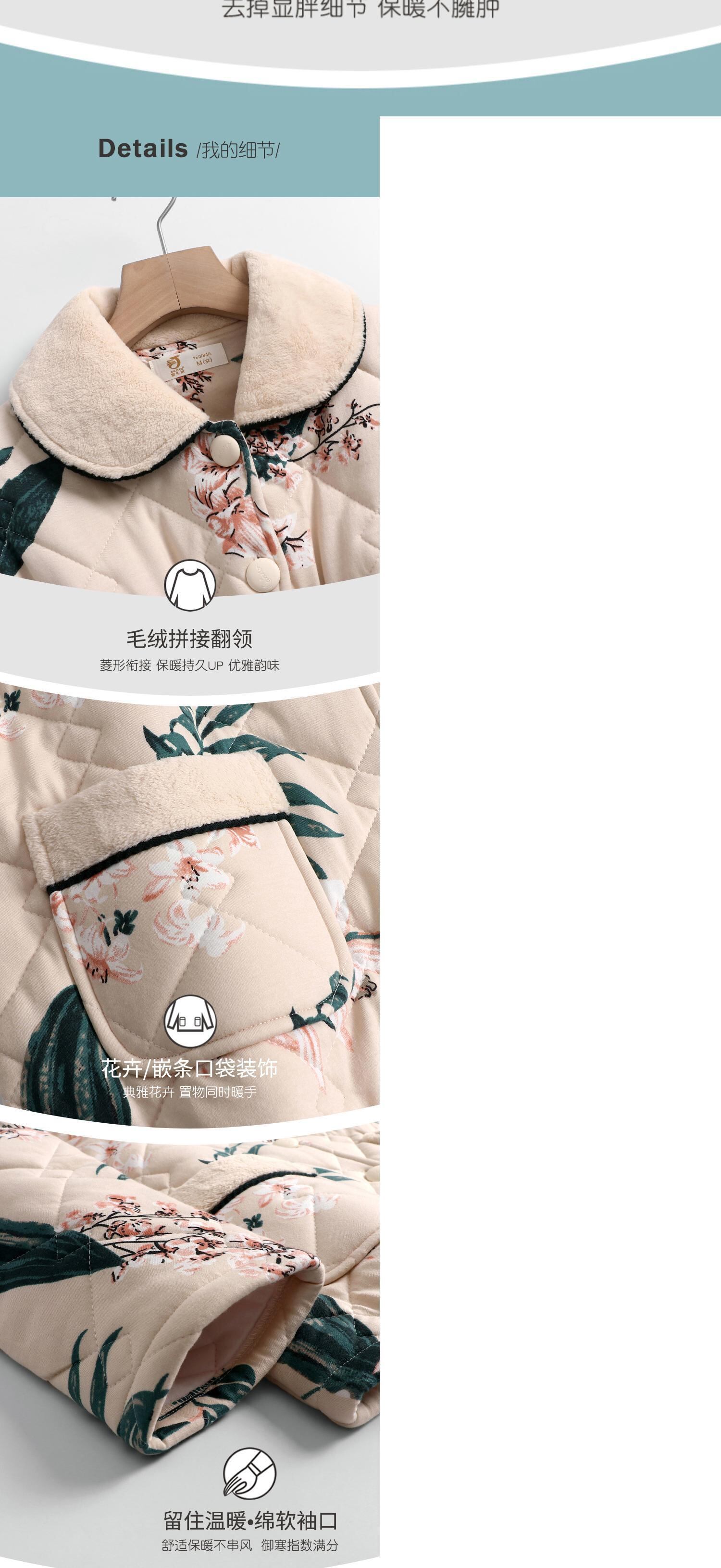 パジャマレディース秋冬冬3層厚手コットンキルティングコットンプラスコットン冬の家庭服暖かいお母さん jial56554401754
