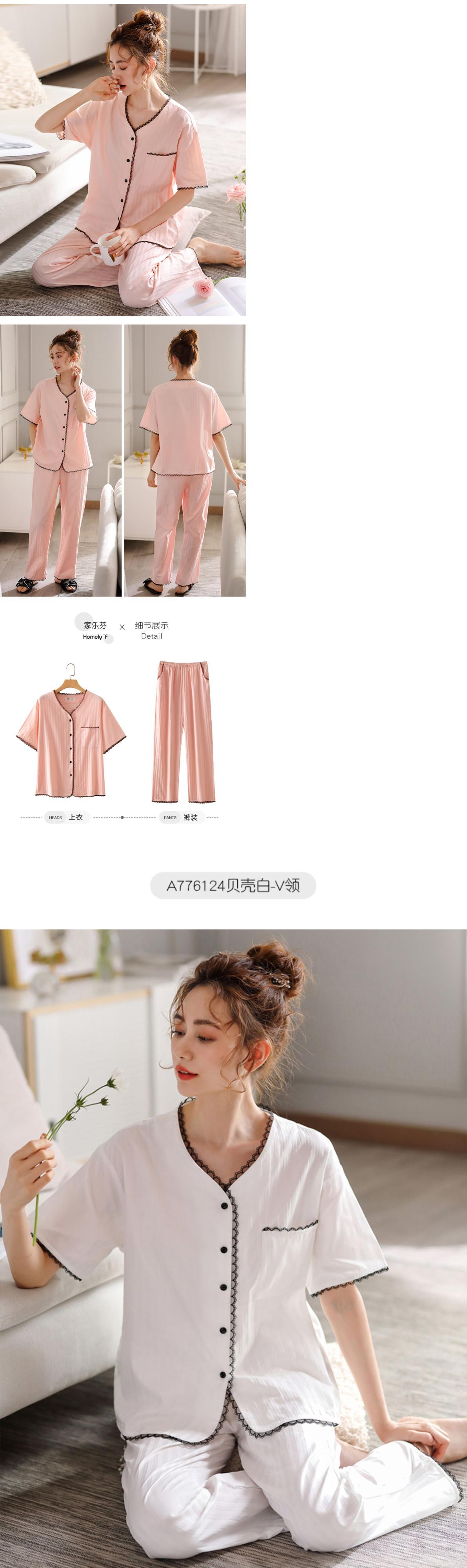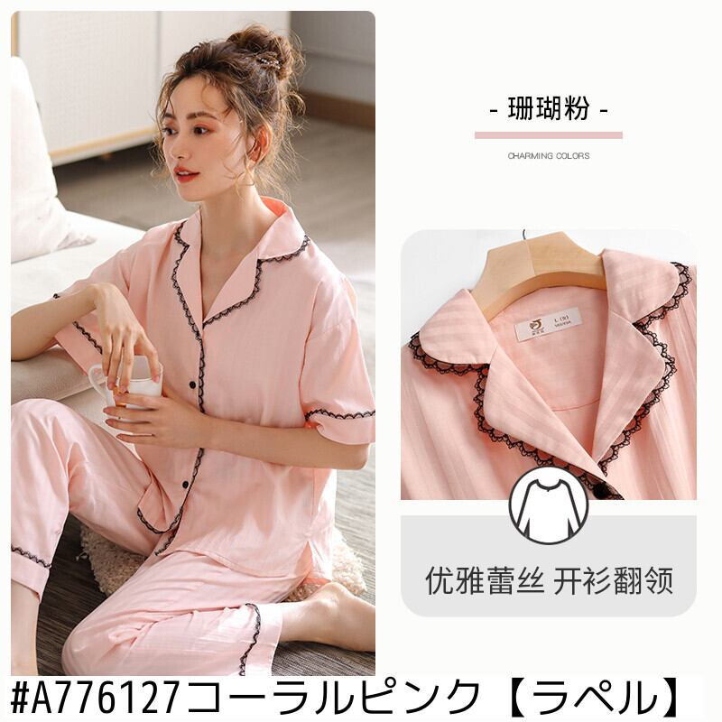 織り綿ガーゼパジャマレディース夏綿半袖ズボン家庭用品夏薄綿カジュアルスーツ jial96815555167