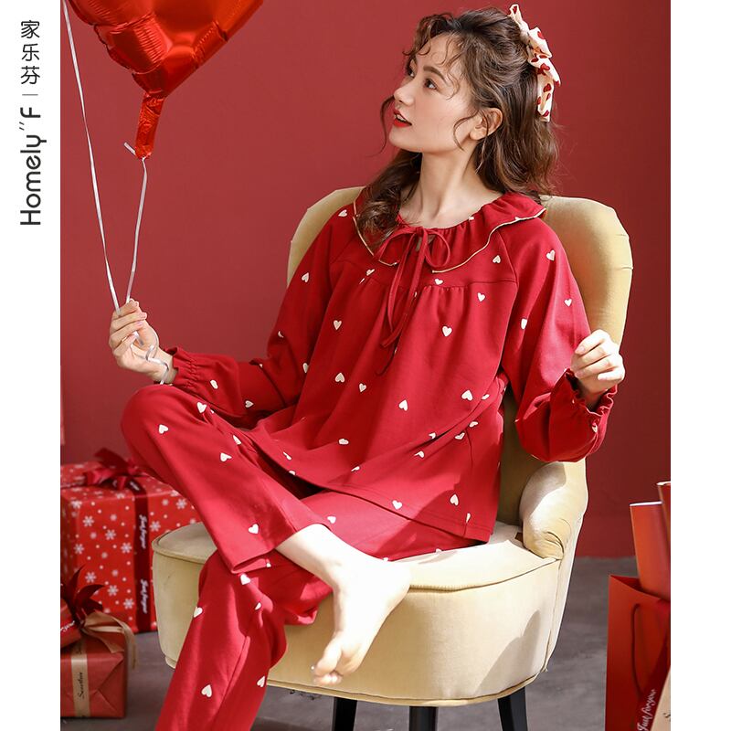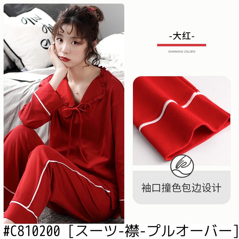 パジャマ春と秋の綿長袖ホームウェア女性の綿ベンミング年ビッグレッドタイガー年秋と冬の結婚式 jial31605181428