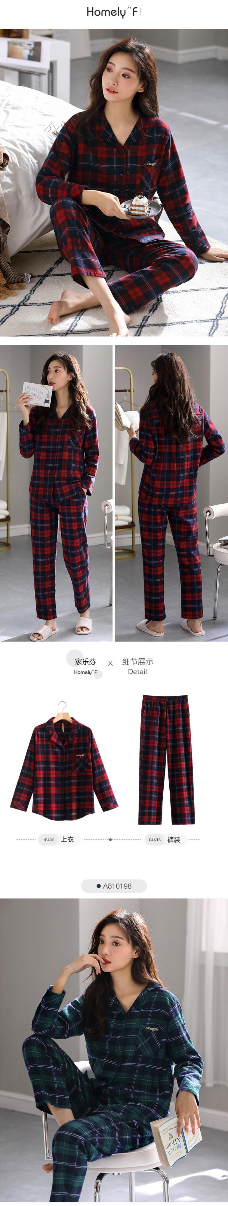ウーブンコットンガーゼブラッシュドパジャマレディース春秋秋コットン長袖ラウンジウェアコットンプラスサイズスーツ jial25027361606