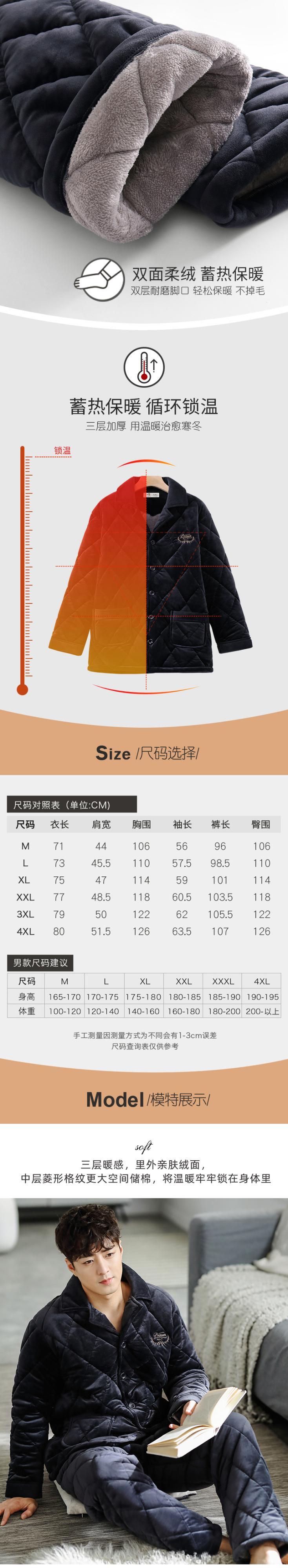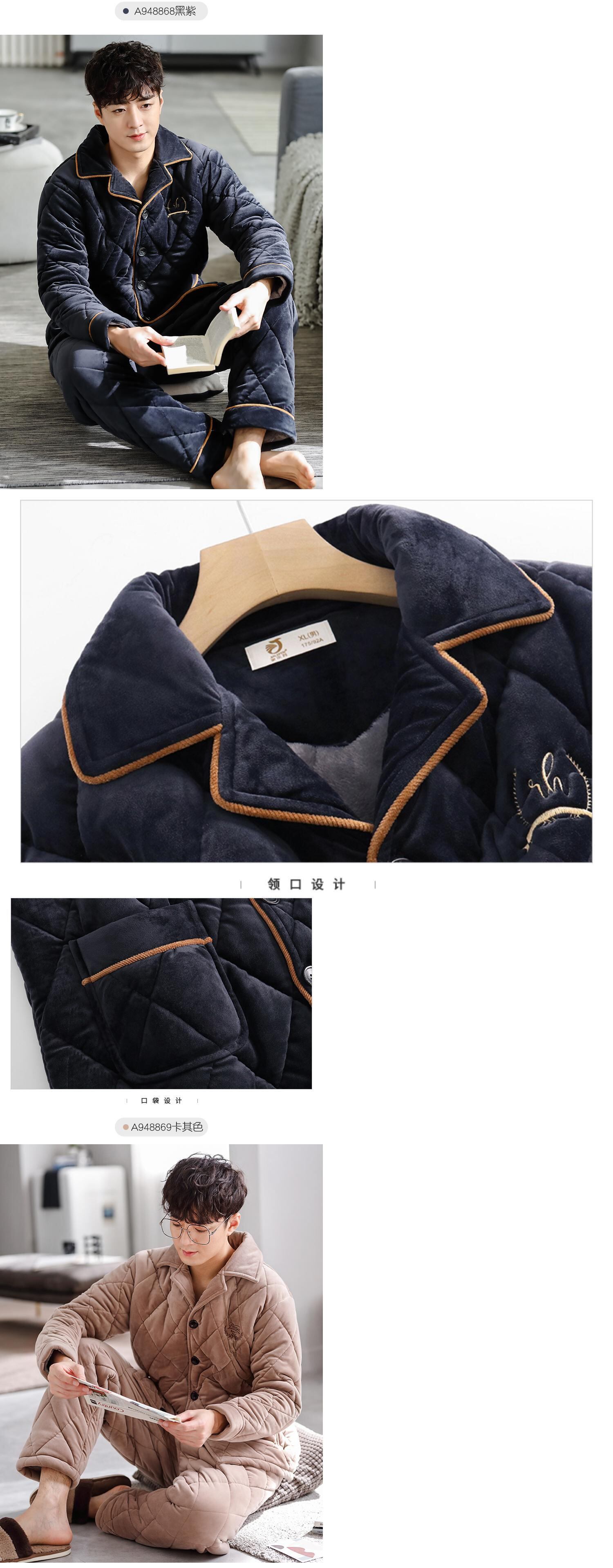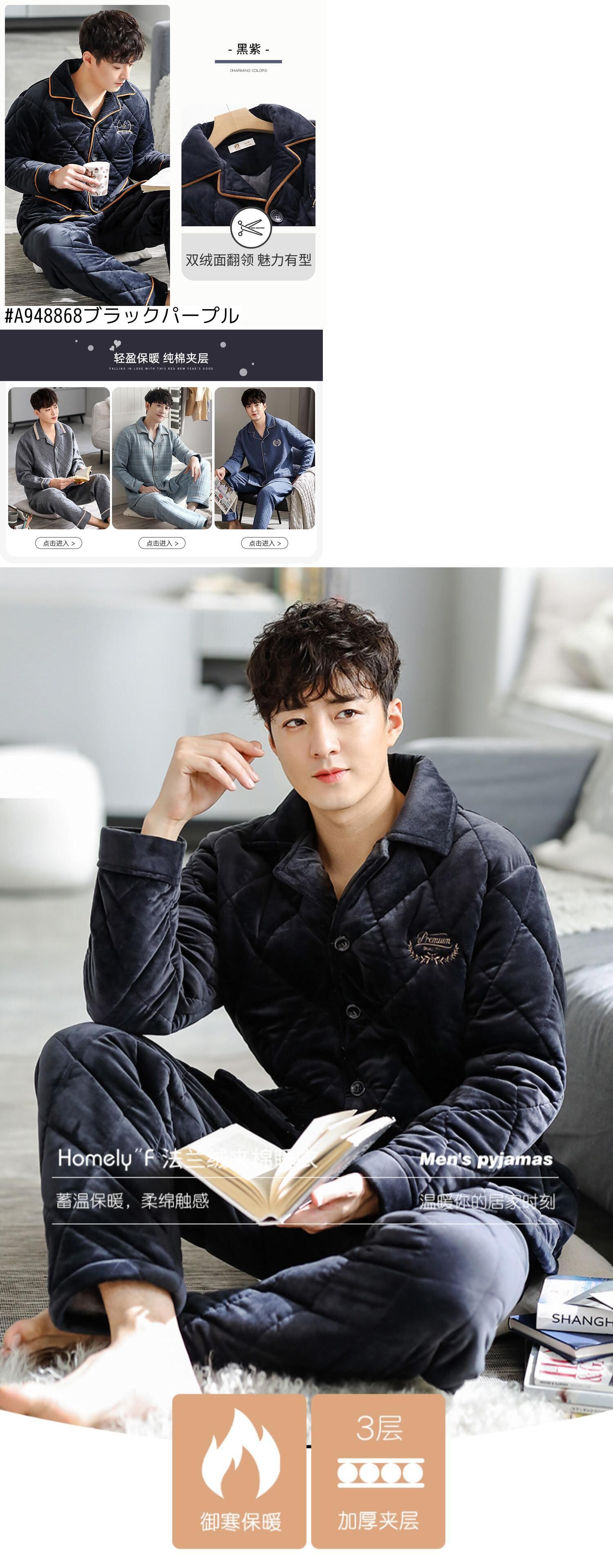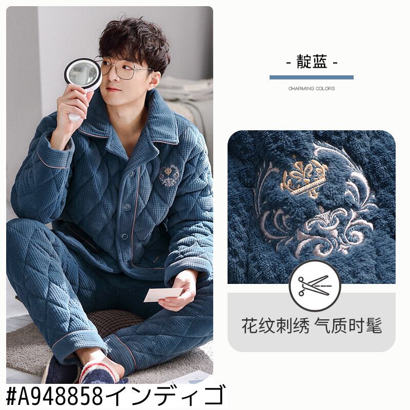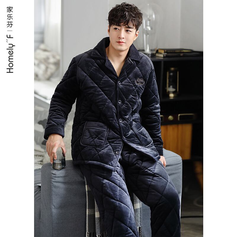 パジャマメンズウィンター3層厚手キルティングコーラルフリースとベルベットウォームフランネルホームサービス秋冬 jial40391652352