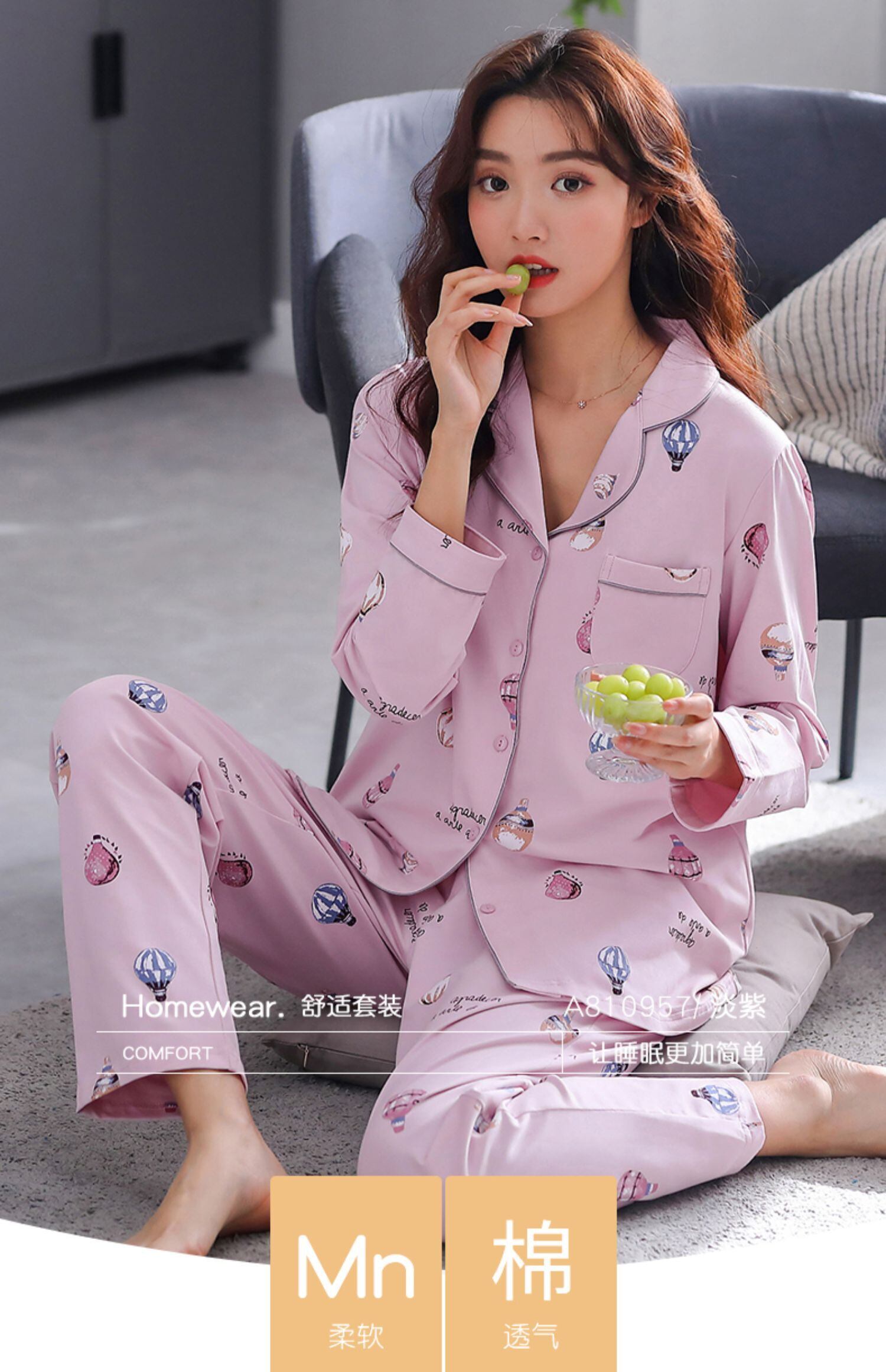 パジャマ春秋秋コットン長袖ホームウェアコットン春夏薄片プラスサイズツーピーススーツ jial1945056505