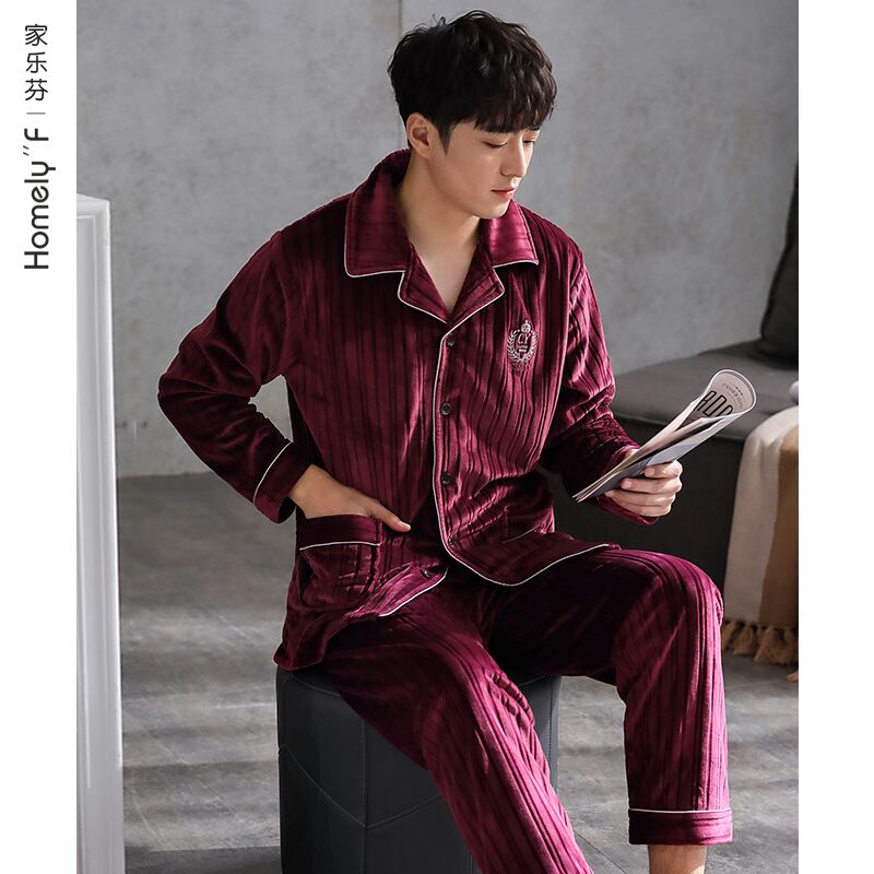 アイランドベルベットパジャマメンズ秋冬モデル冬フランネルコーラルベルベット厚手プラスベルベット家庭服赤出生年 jial76675876165