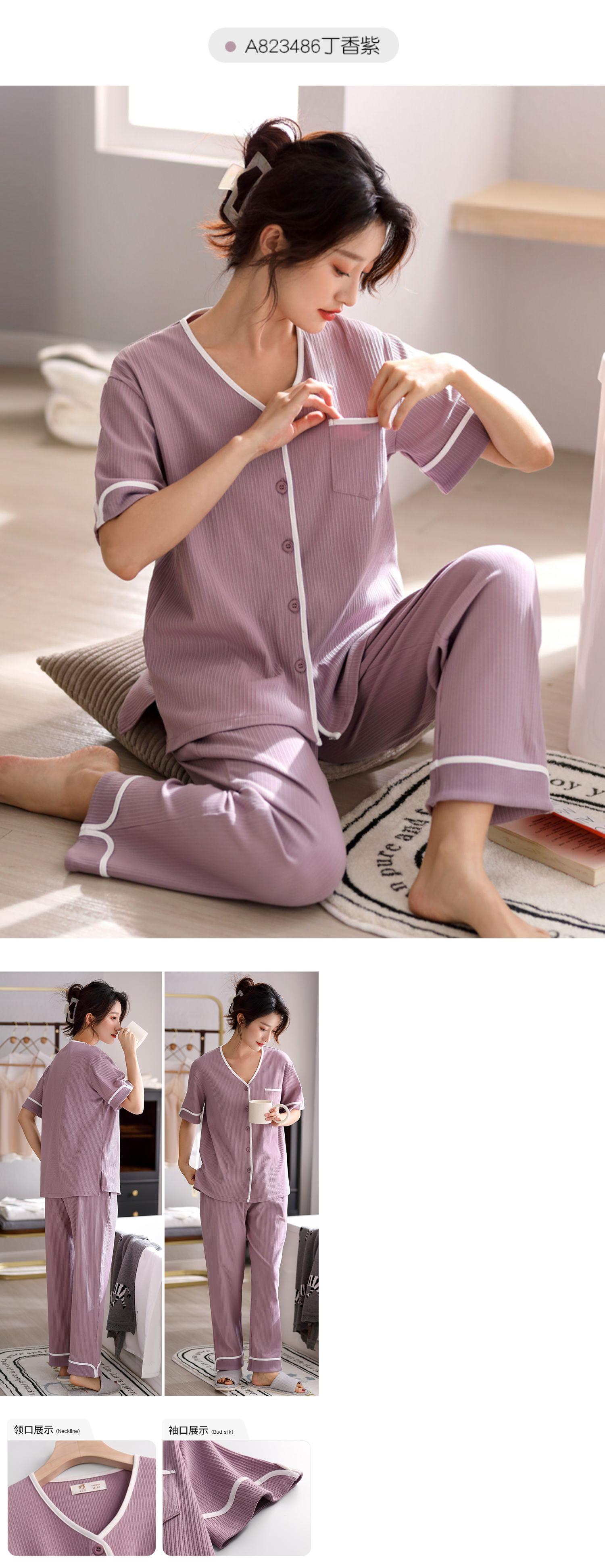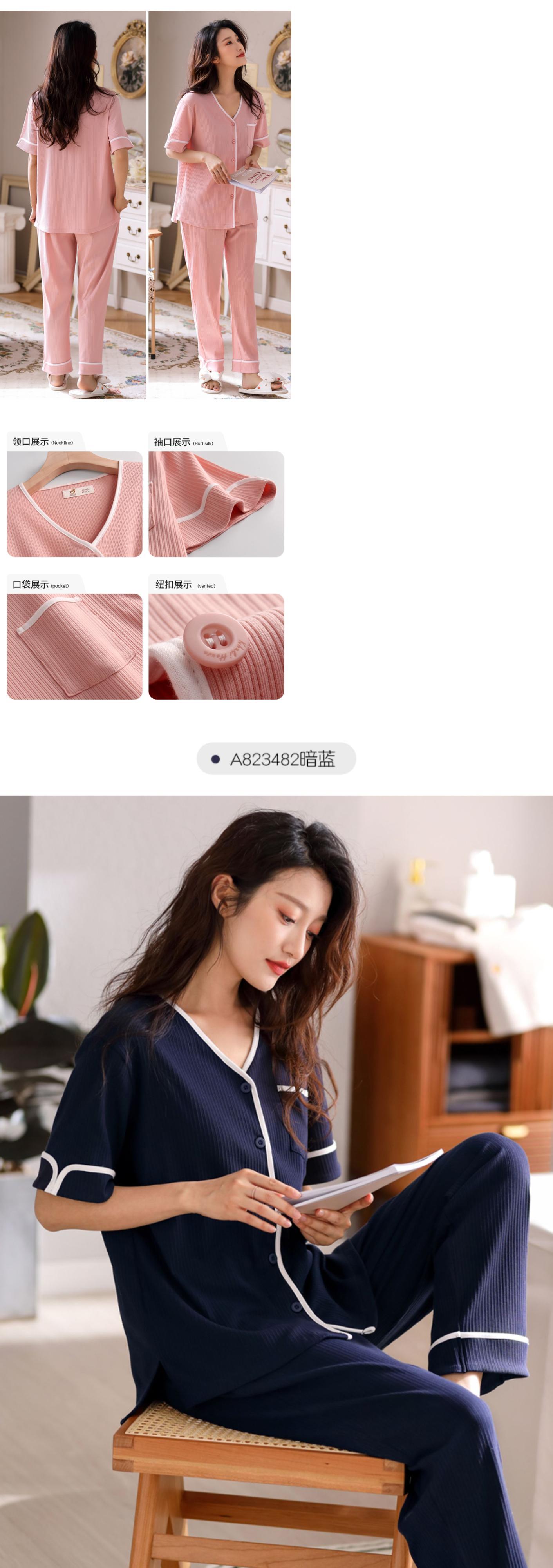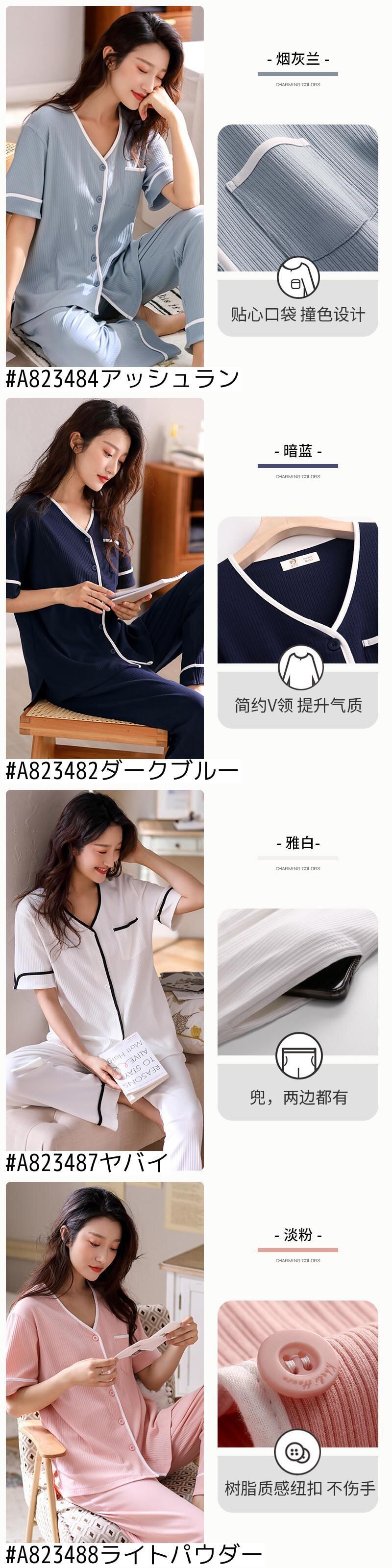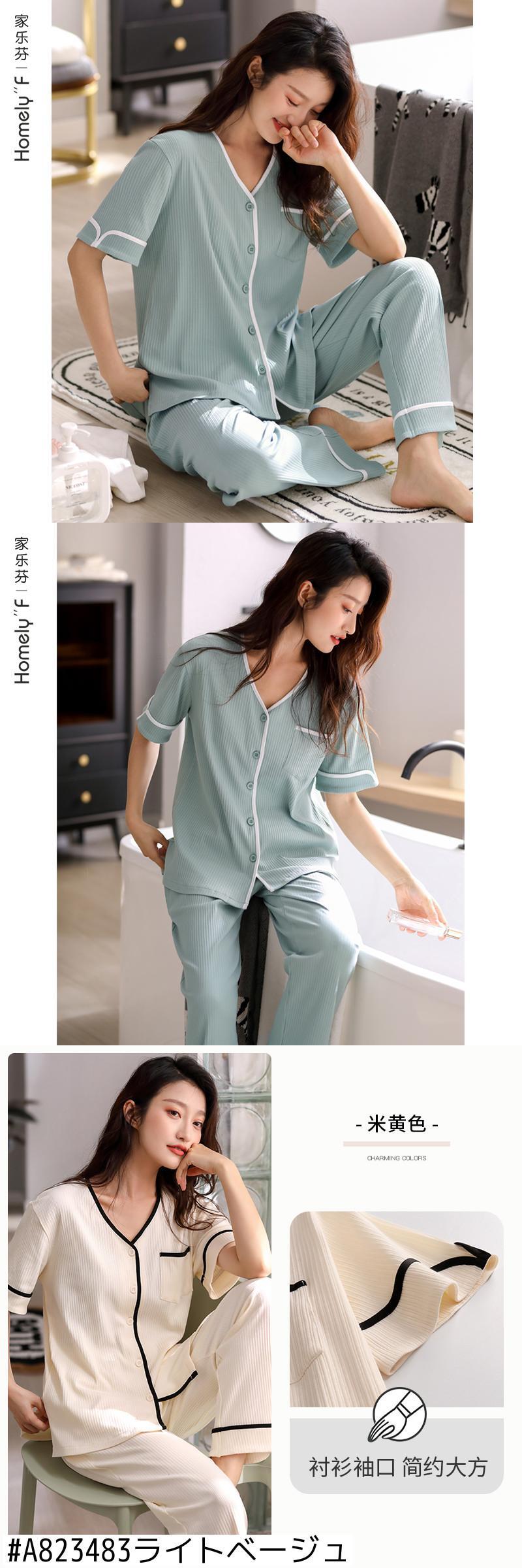 2021年新作パジャマレディースサマー半袖パンツホームウェアサマーシンカーディガンツーピーススーツ jial75335247825