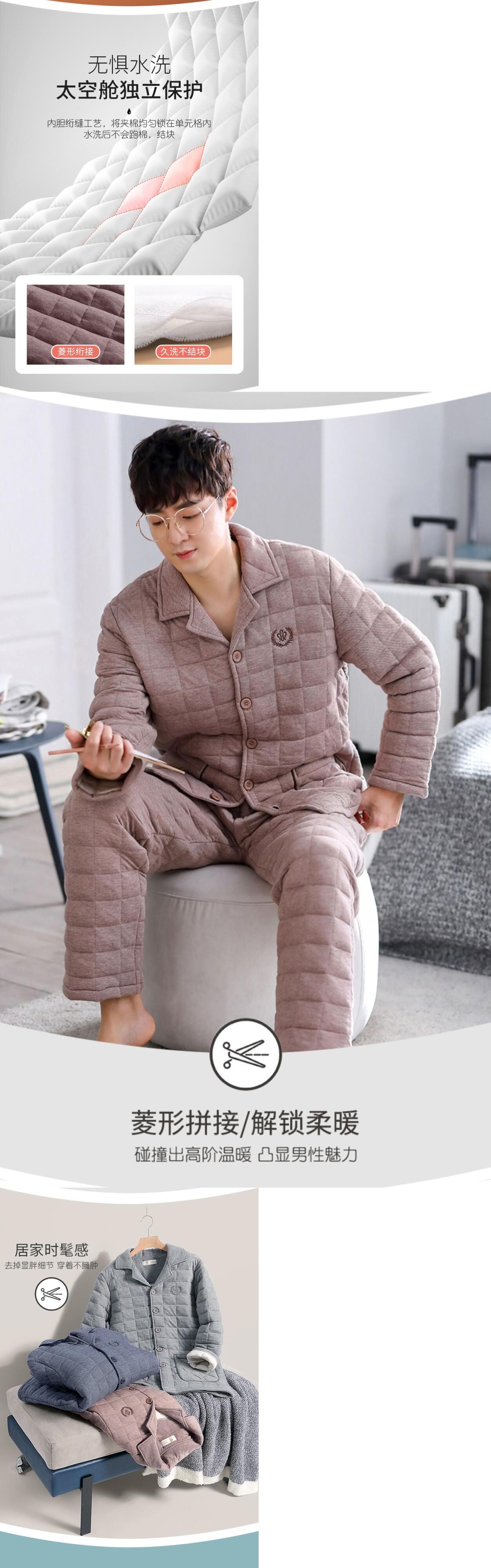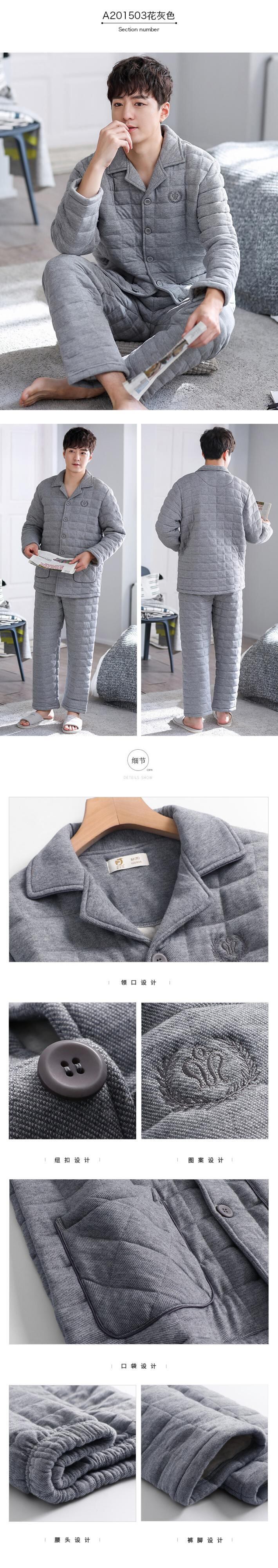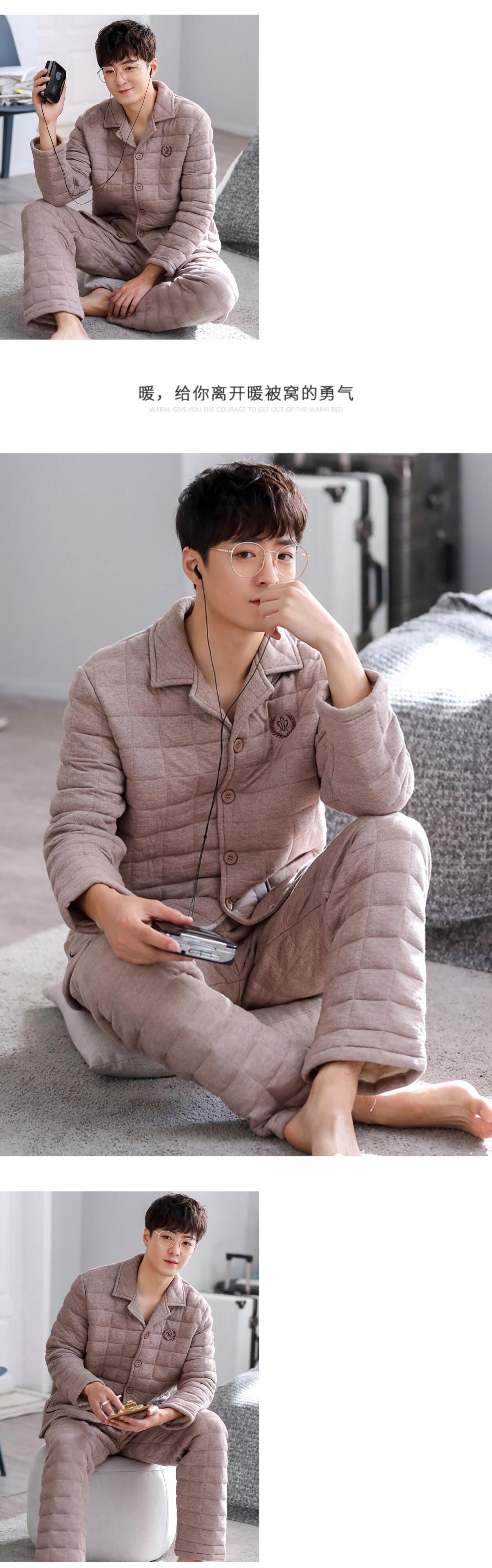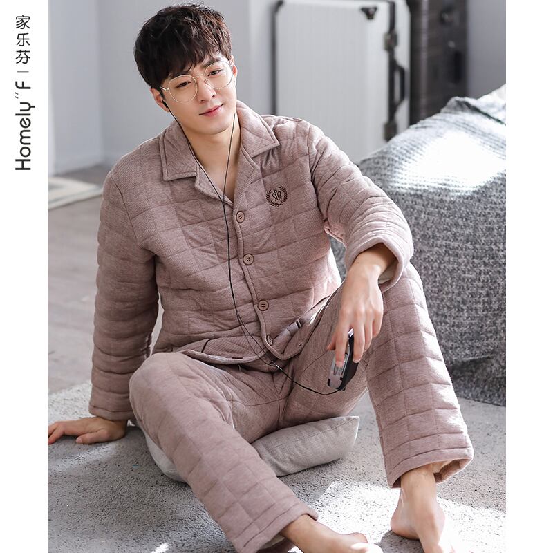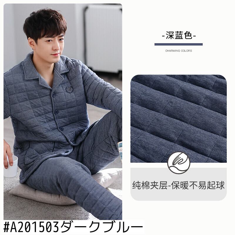 【ショッピングモールでも同じスタイル】パジャマメンズ春秋厚手コットン長袖秋冬コットンキルティング中間層家庭服 jial93151753369
