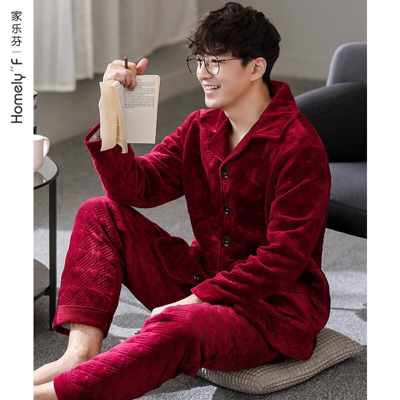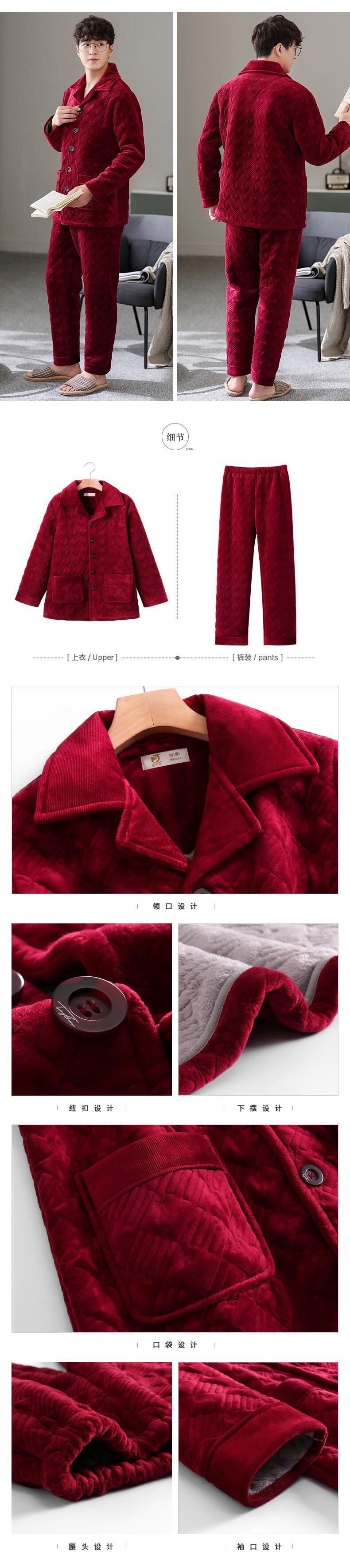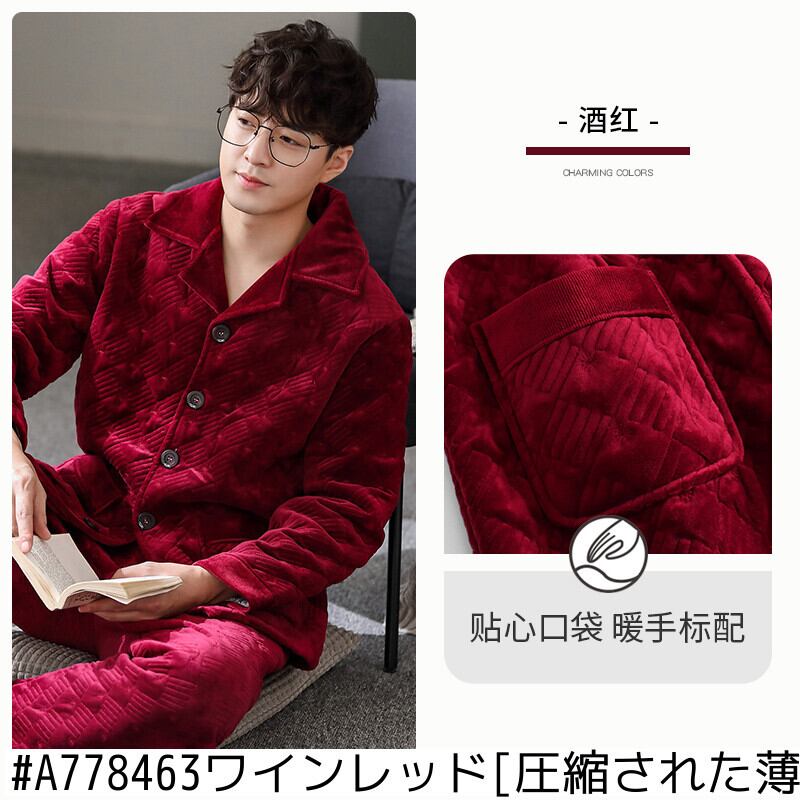 パジャマメンズ秋冬モデル冬厚めキルティングコーラルベルベットプラスベルベットフランネルホームサービスベンミングイヤービッグレッド jial60162327951