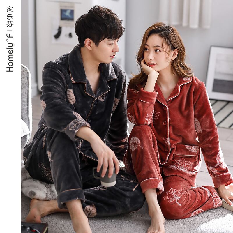 カップルパジャマメンズ秋冬モデル冬フランネル厚手のコーラルフリースウォームプラスベルベットレディースホームウェアスーツ jial30663554561