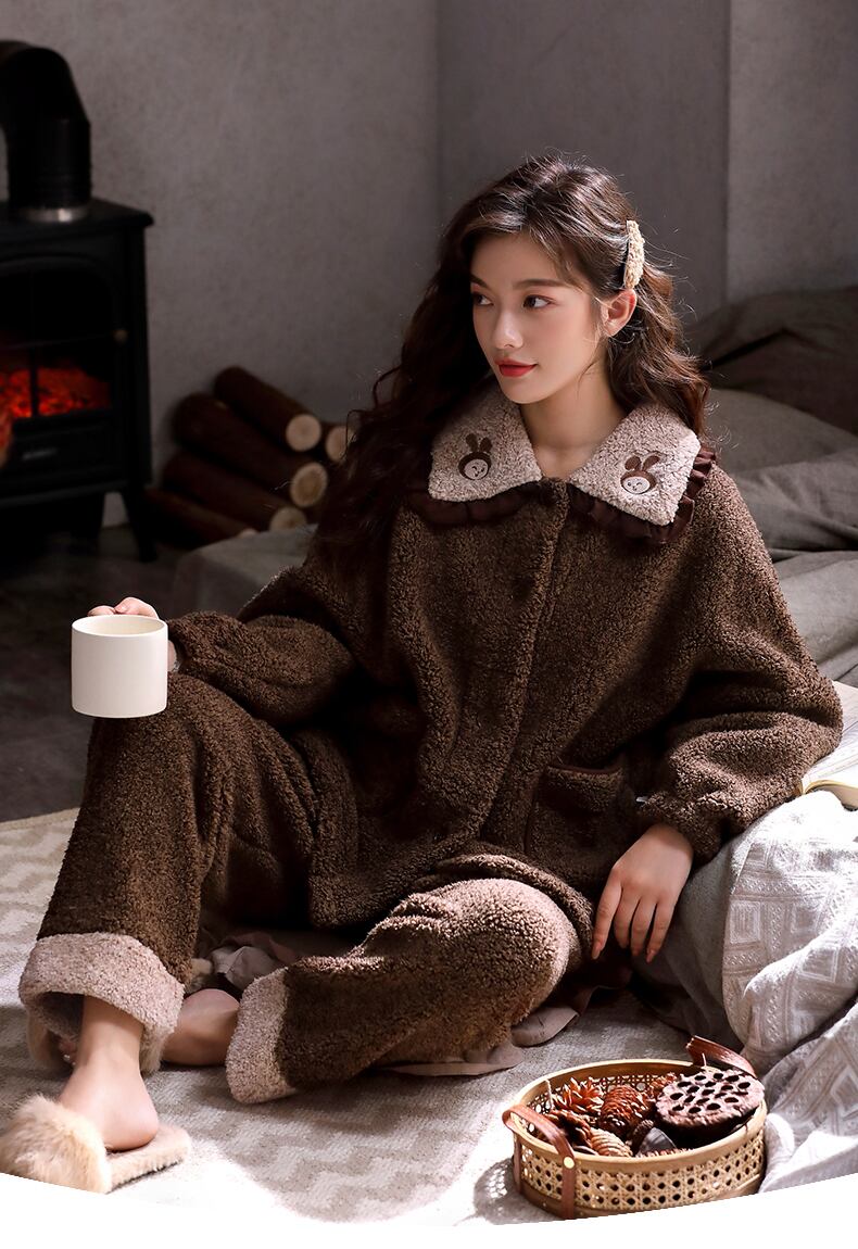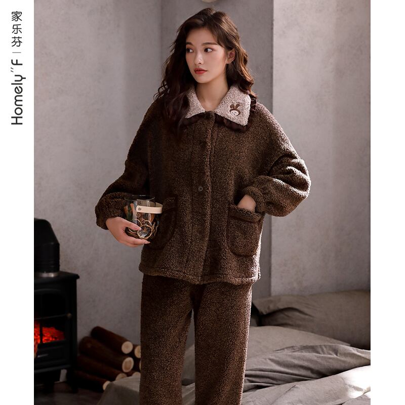 パジャマ秋冬冬フランネルシックニングとフリースコーラルフリースぬいぐるみホームウェア冬ラージサイズスーツ jial65981528521