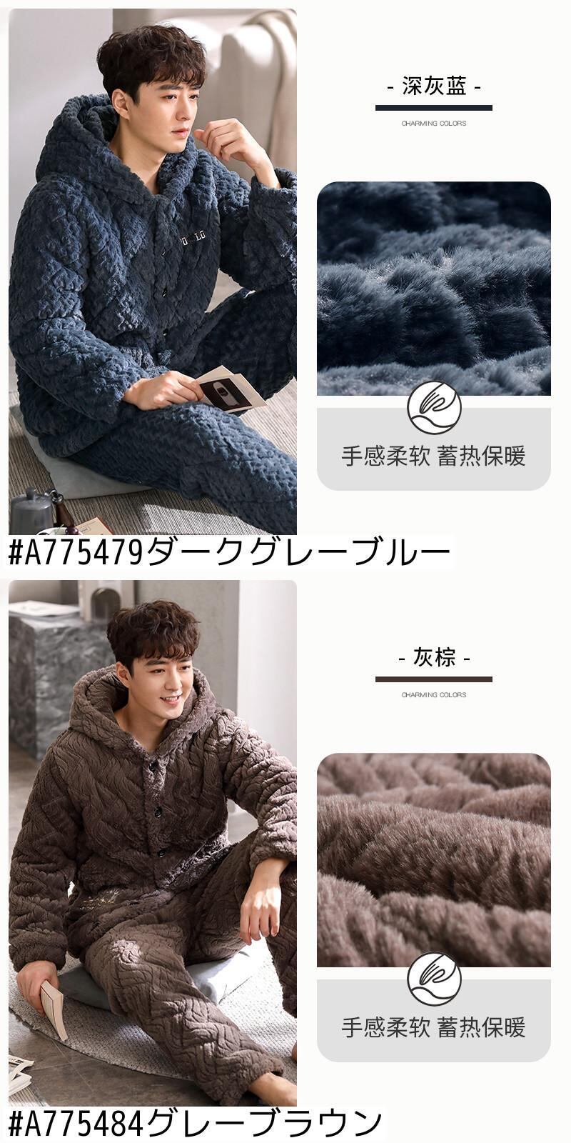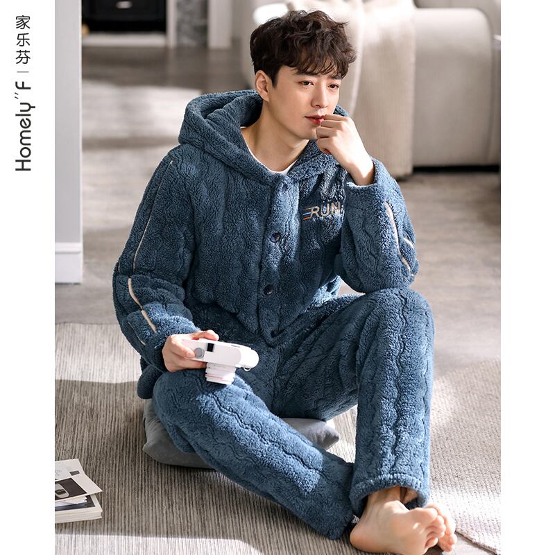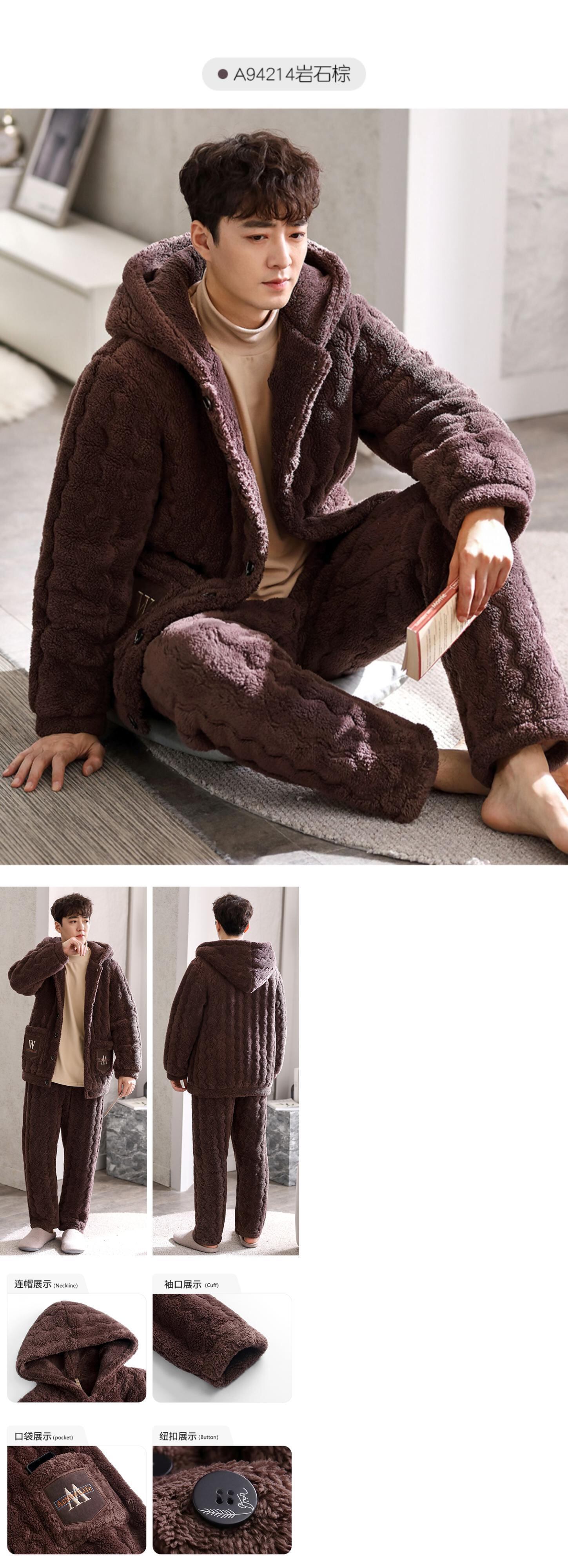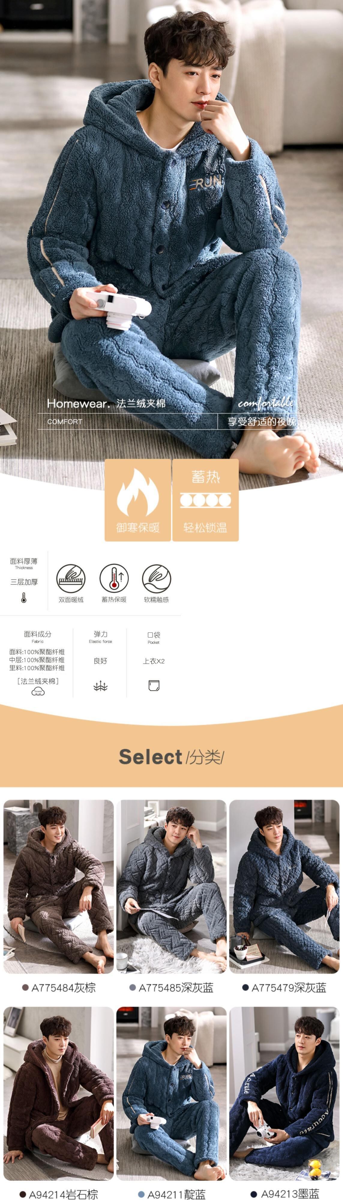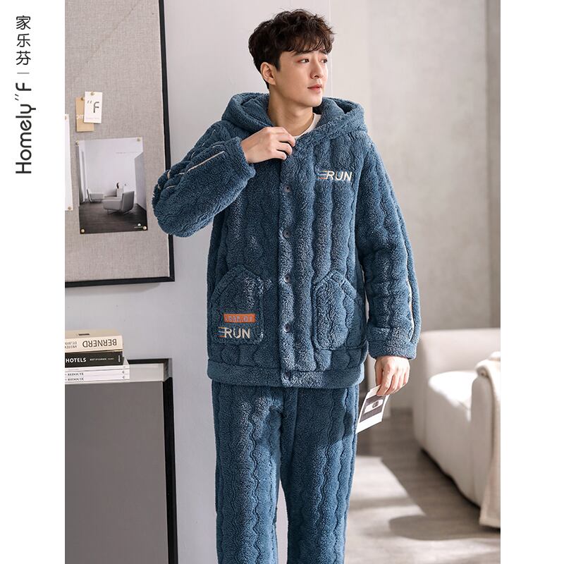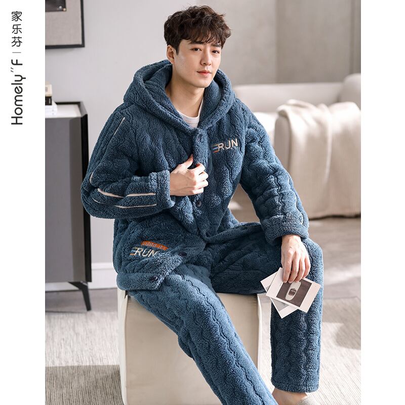 パジャマメンズ冬3層厚手超厚キルティングコーラルベルベットプラスベルベットフランネルホームサービス冬秋冬 jial83807331216