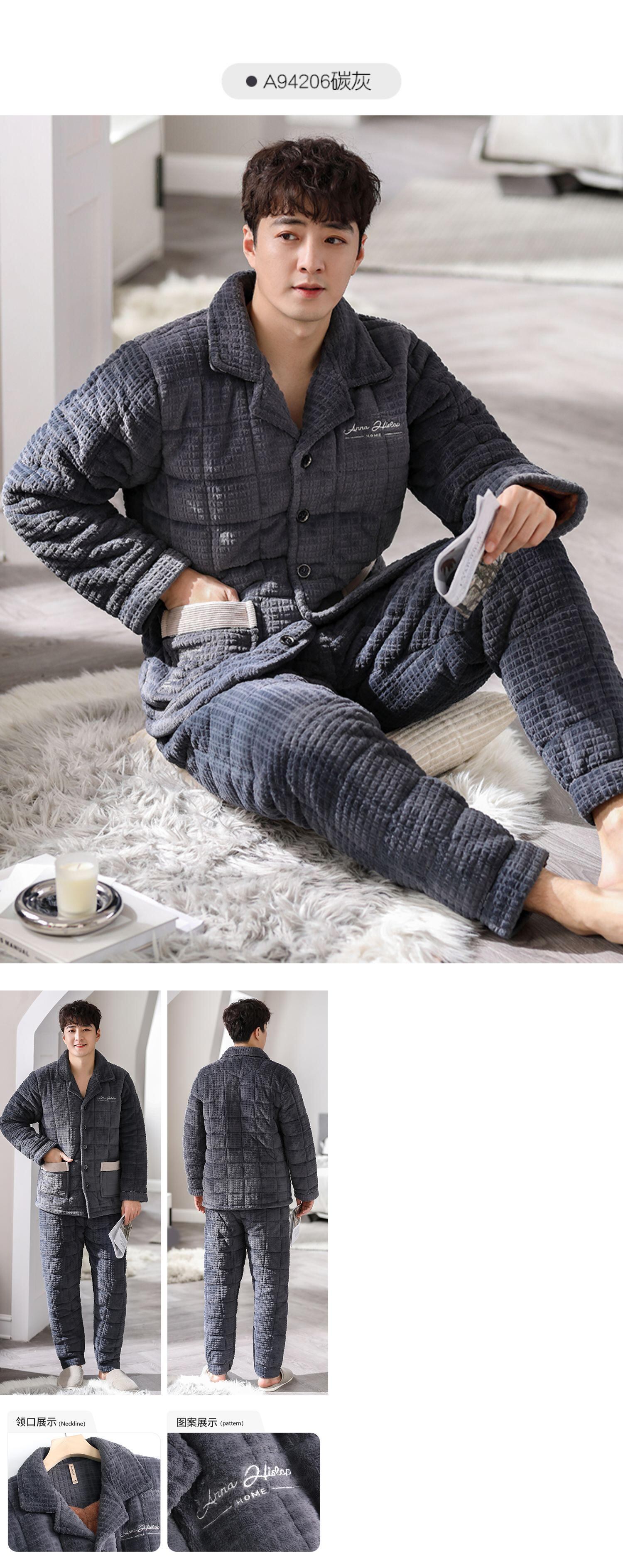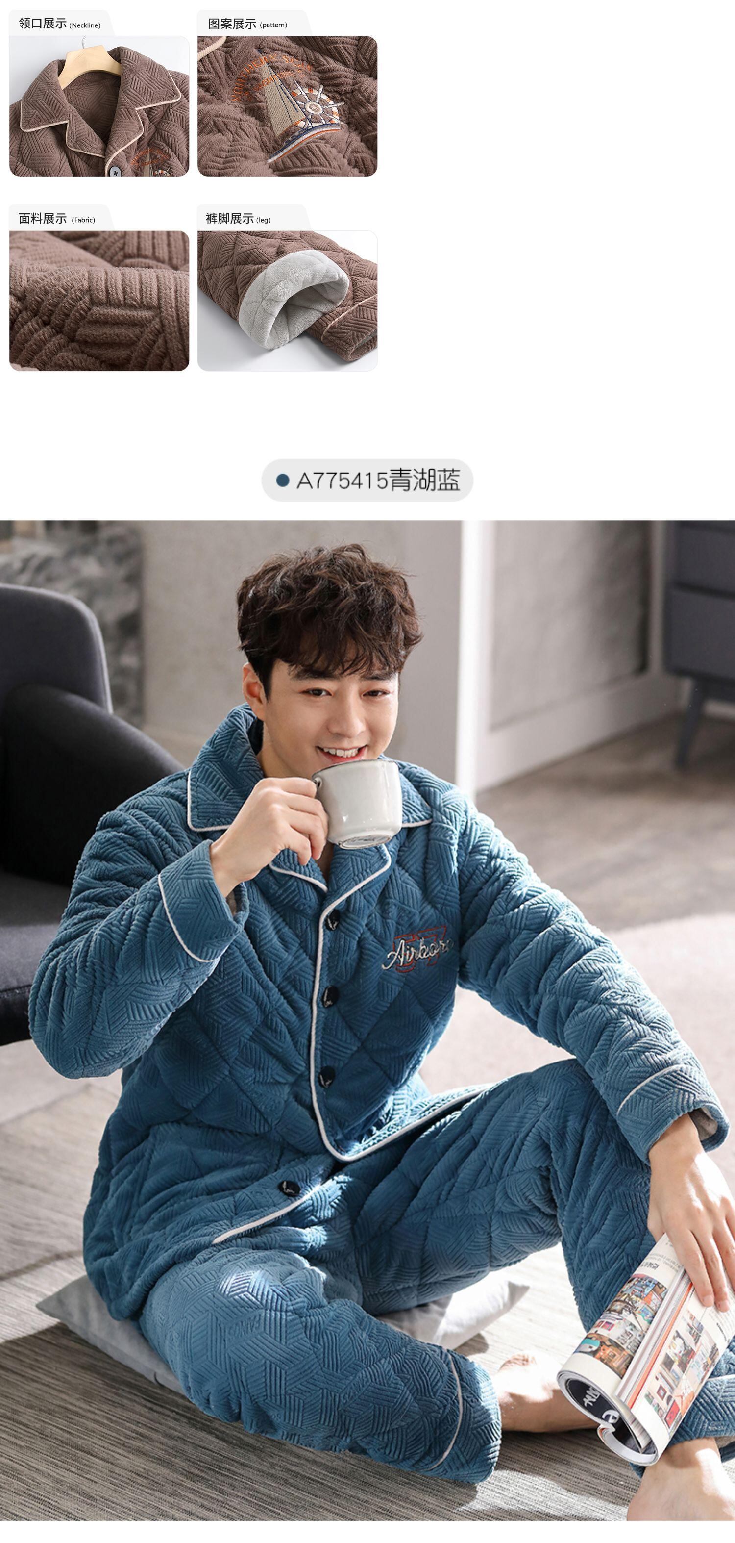 パジャマメンズ冬3層厚手超厚キルティングフランネルプラスベルベットコーラルフリースホームサービス秋冬モデル jial35882618148