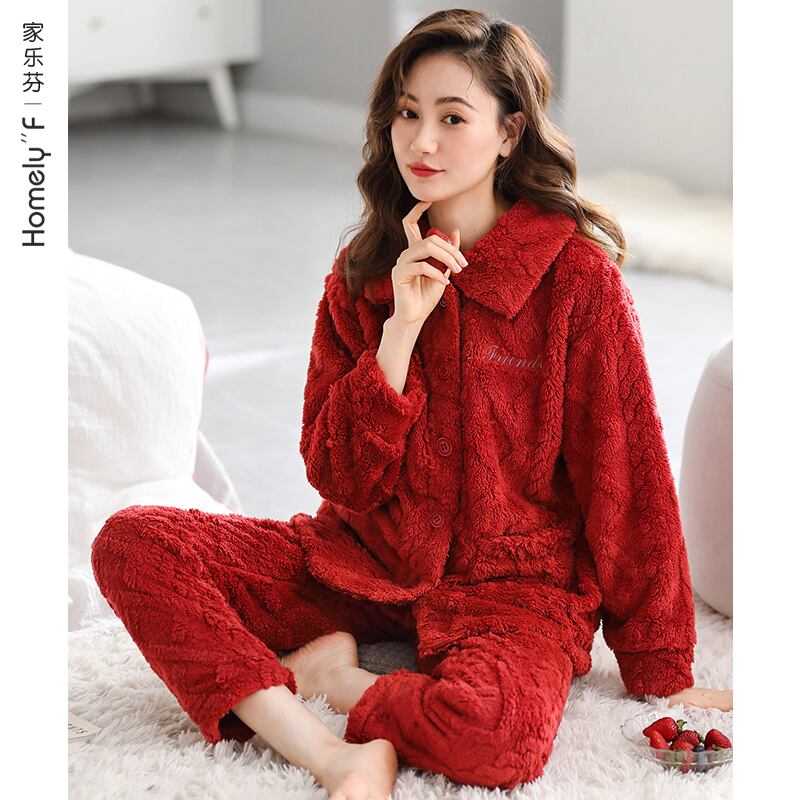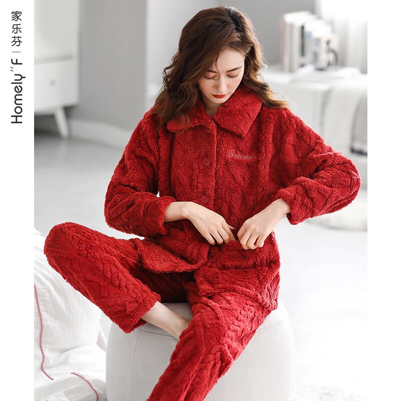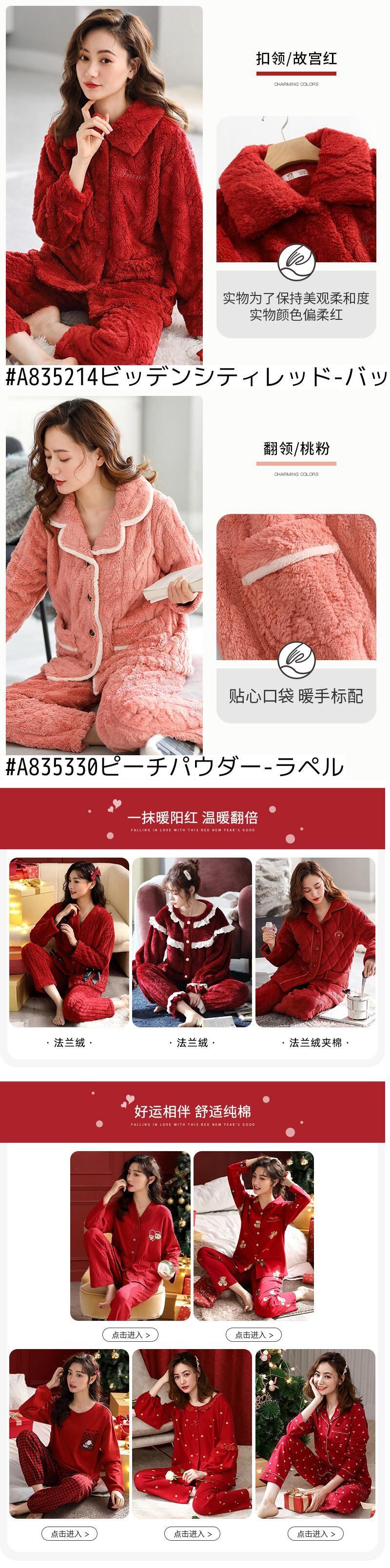 フランネルパジャマレディース秋冬コーラルベルベット厚手プラスベルベット家庭服冬冬ビッグレッド出生年 jial56302674795