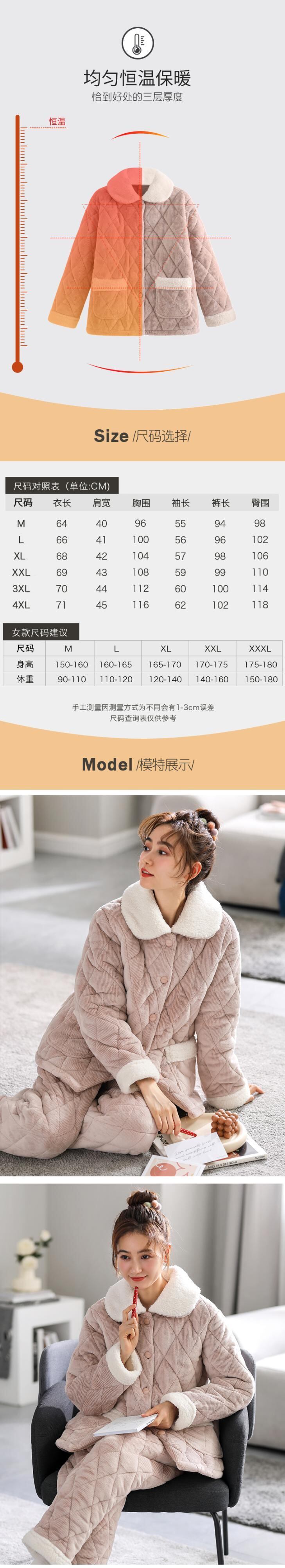 パジャマの女性の冬の3層の厚くされた超厚いキルティングフランネルとベルベットの珊瑚フリースホームサービス秋と冬のモデル jial86284010704