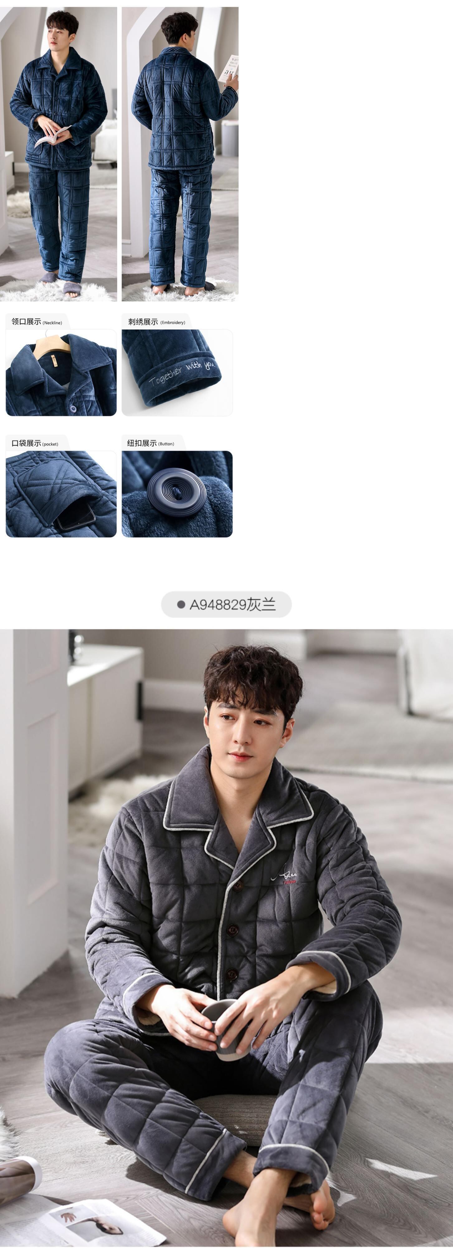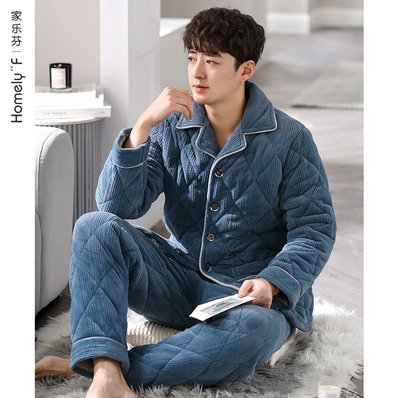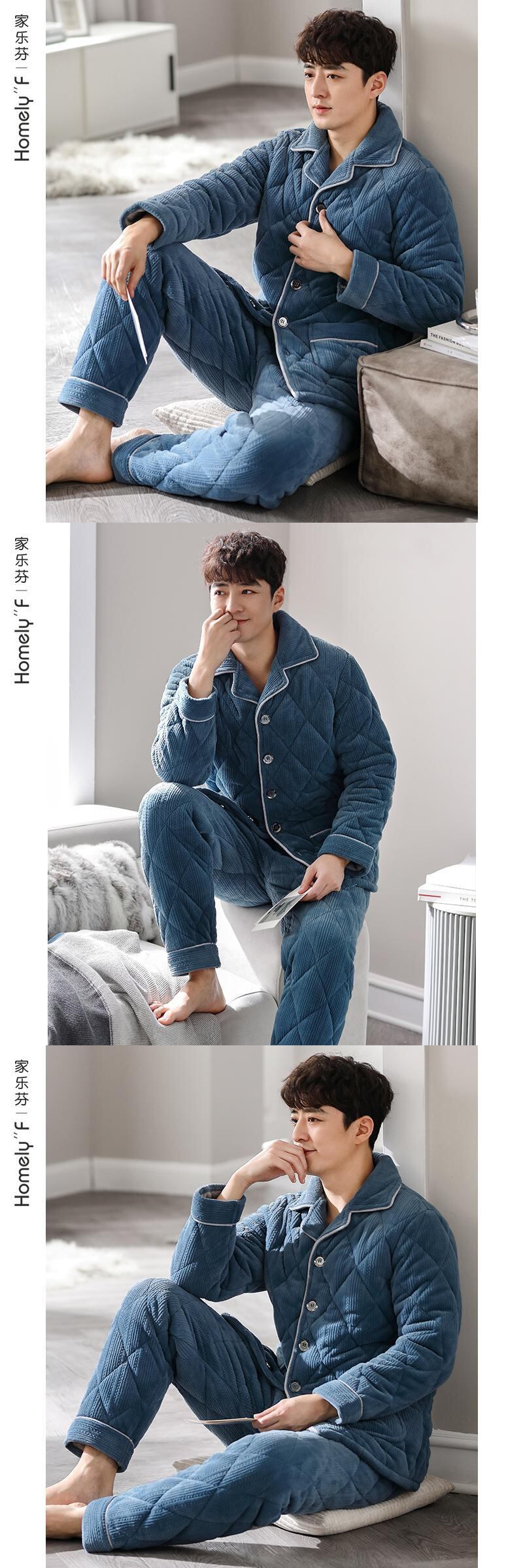 パジャマメンズウィンター3層厚手キルティングフランネルプラスベルベットコーラルフリースホームウェアメンズ秋冬モデル jial3016688366