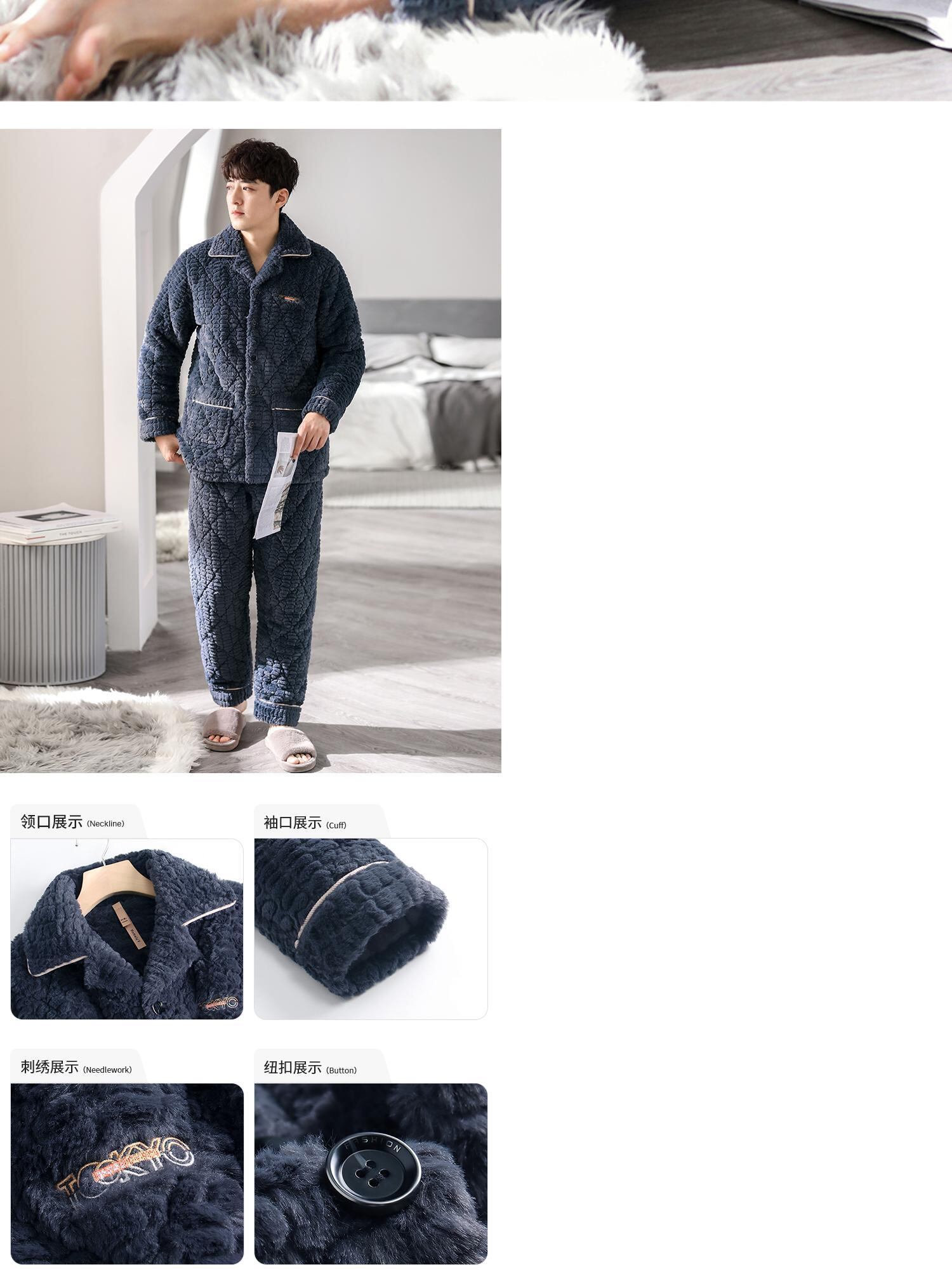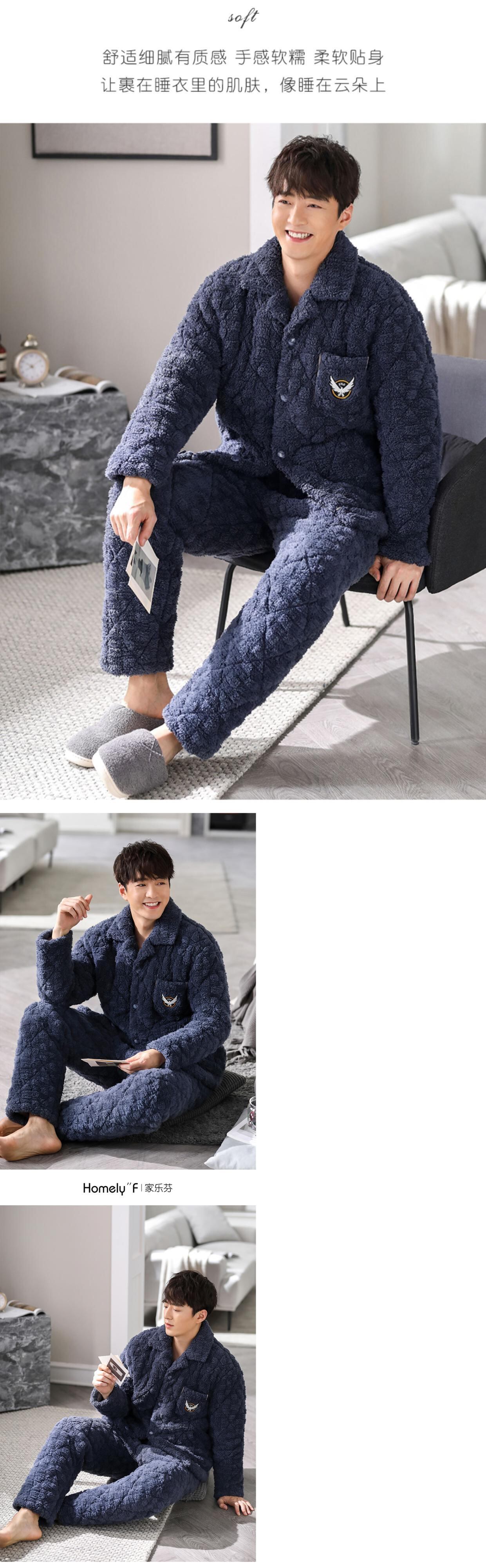 パジャマメンズ冬3層厚手超厚キルティングコーラルベルベットプラスベルベット家庭服フランネル冬秋冬モデル jial45408824385