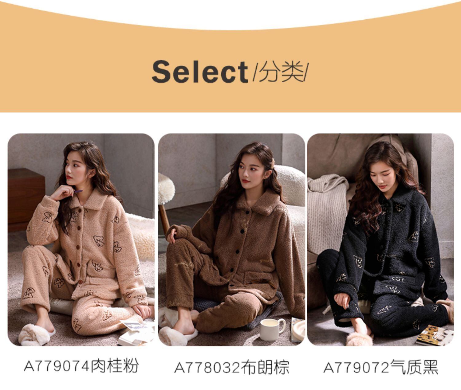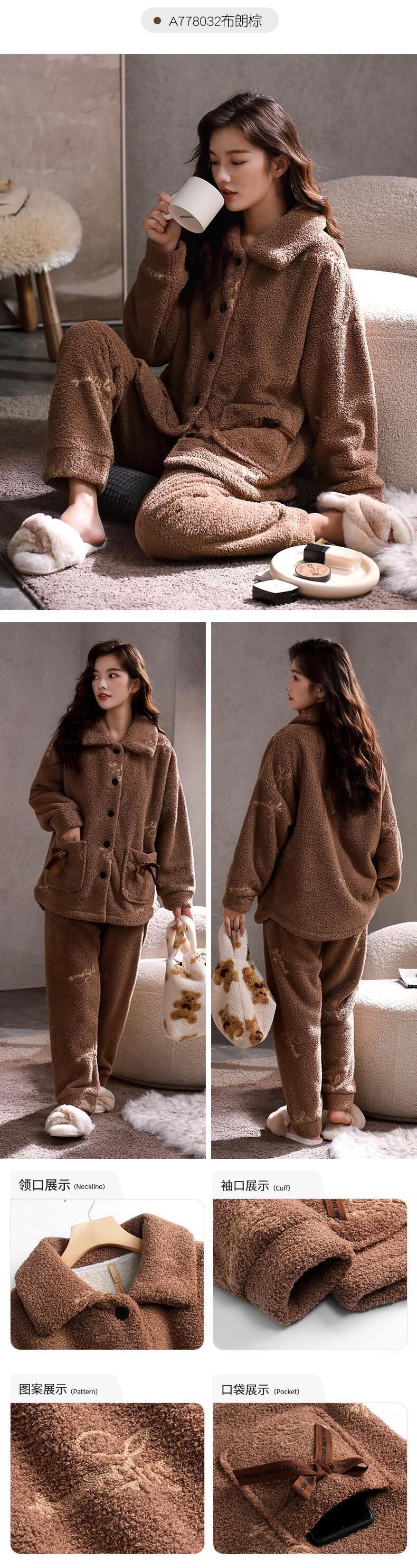 パジャマの女性の秋と冬のモデル冬の複合キルティングコーラルフリースを厚くし、ベルベットのフランネルの家庭服の冬のスーツ jial40724999691
