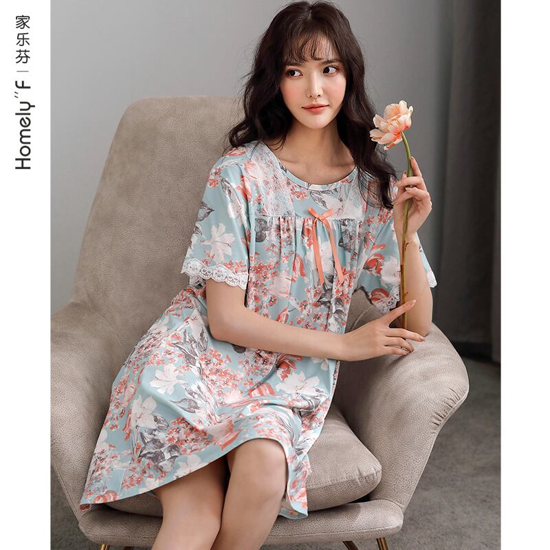 ネグリジェレディースパジャマ夏夏綿半袖薄手綿中年お母さん中年・お年寄りドレス jial8816517830