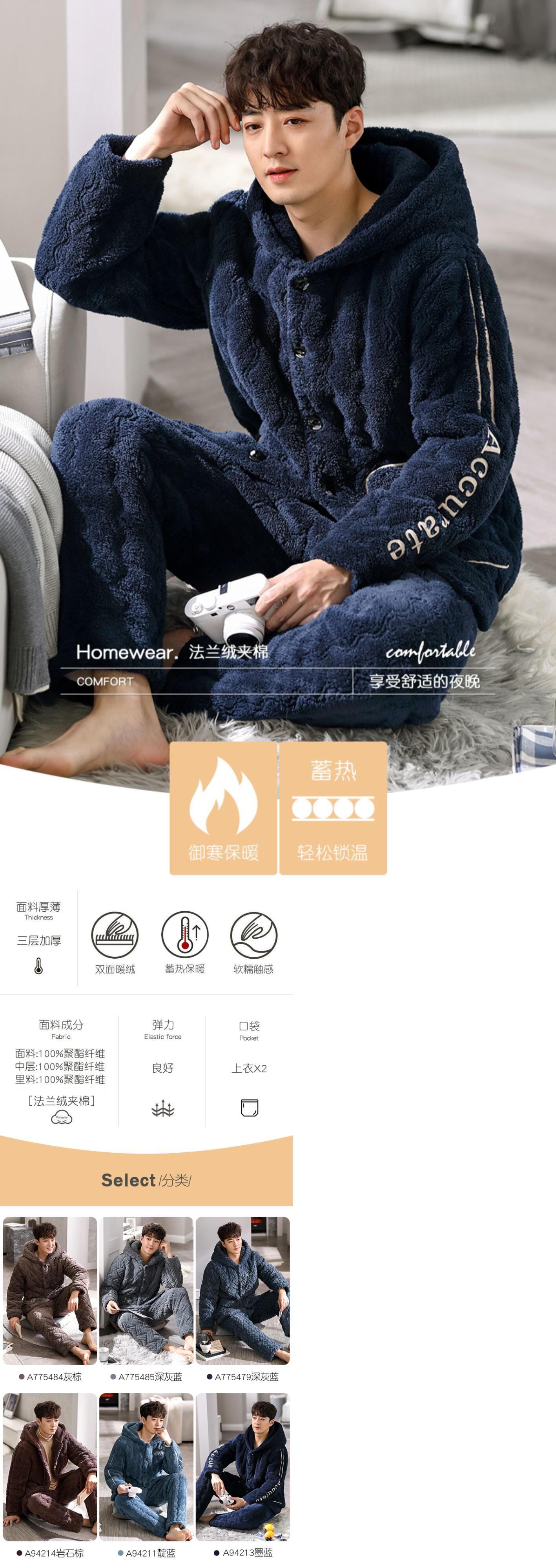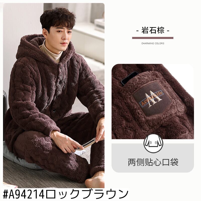 パジャマメンズ冬3層厚手超厚キルティングコーラルベルベットプラスベルベットフランネルホームサービス冬秋冬 jial22927471333