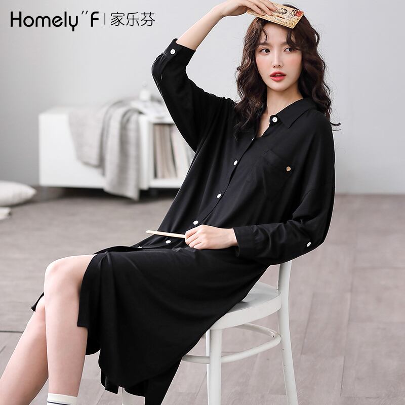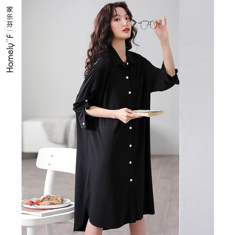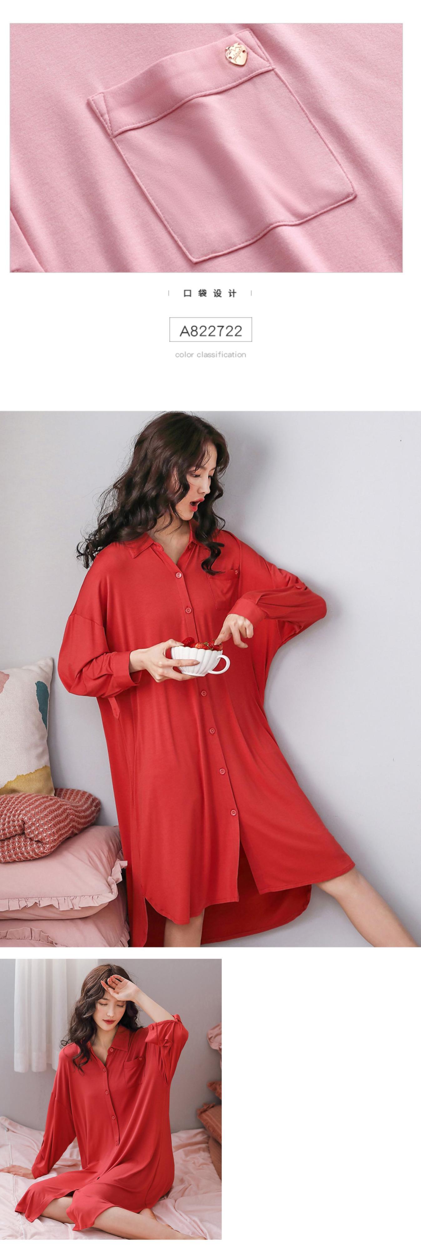 ネグリジェパジャマ春夏夏長袖春秋薄手の膝上ロングモーダルコットンシルクカーディガンシャツ jial31393502689