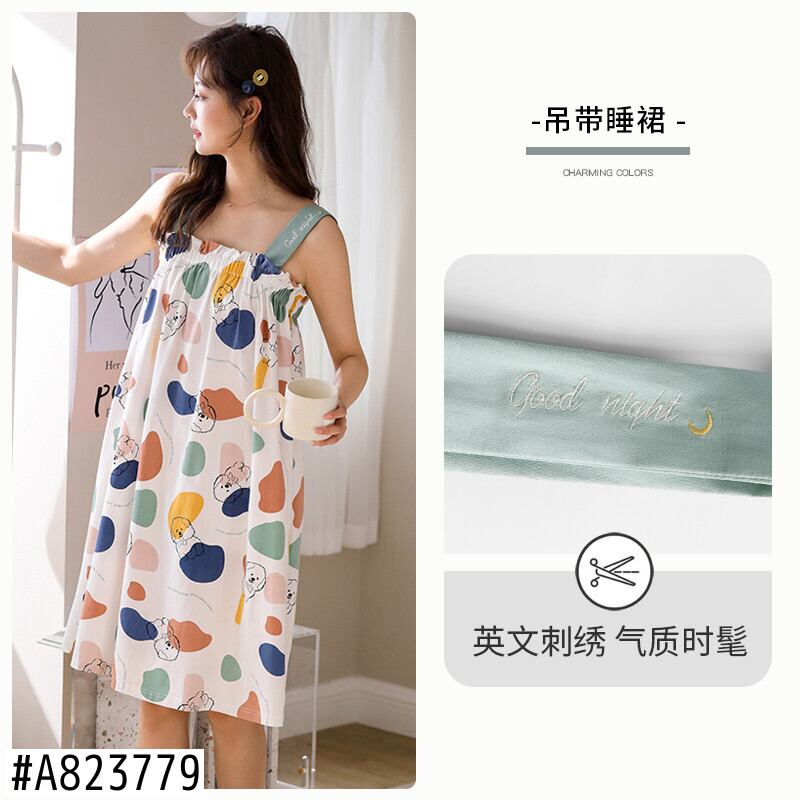 ネグリジェパジャマ夏夏コットンキャミソールノースリーブ薄手のドレスロング妊婦ラージサイズ jial68062801400