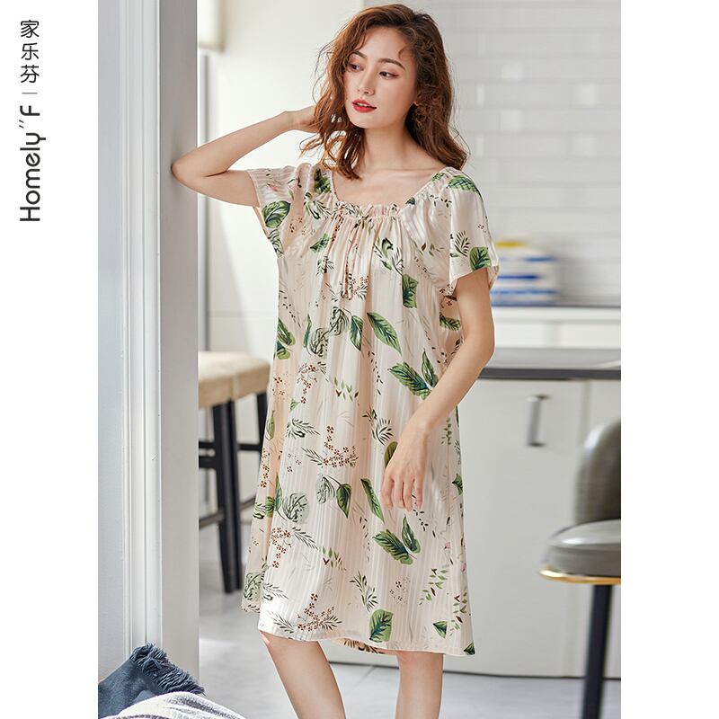 ネグリジェレディースパジャマ夏夏シルクアイスシルク薄片クールシミュレーションシルクルーズラージサイズ中年お母さん jial97317985522
