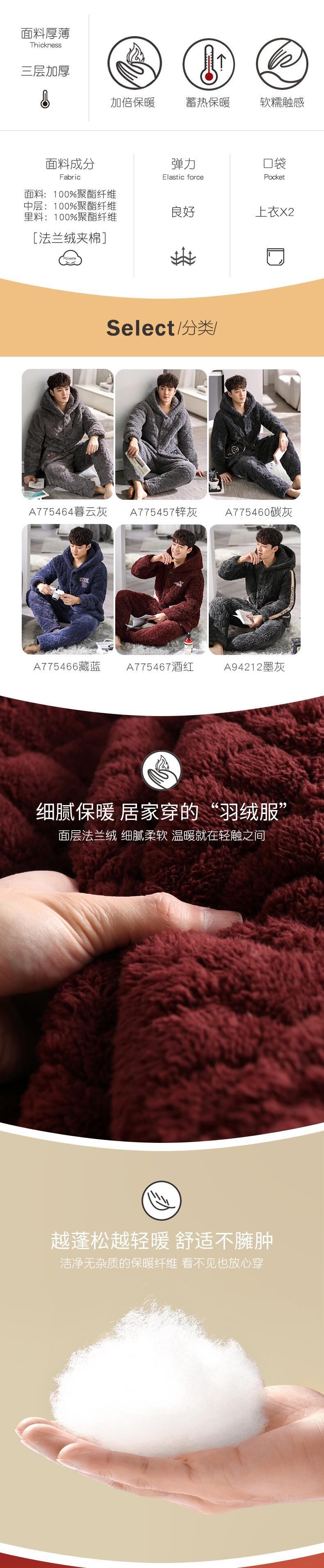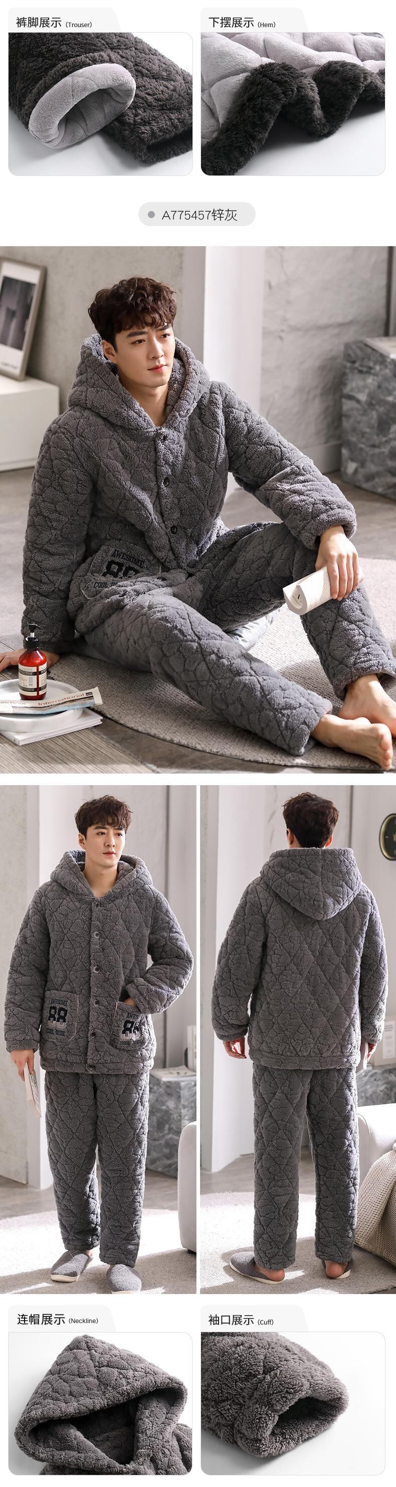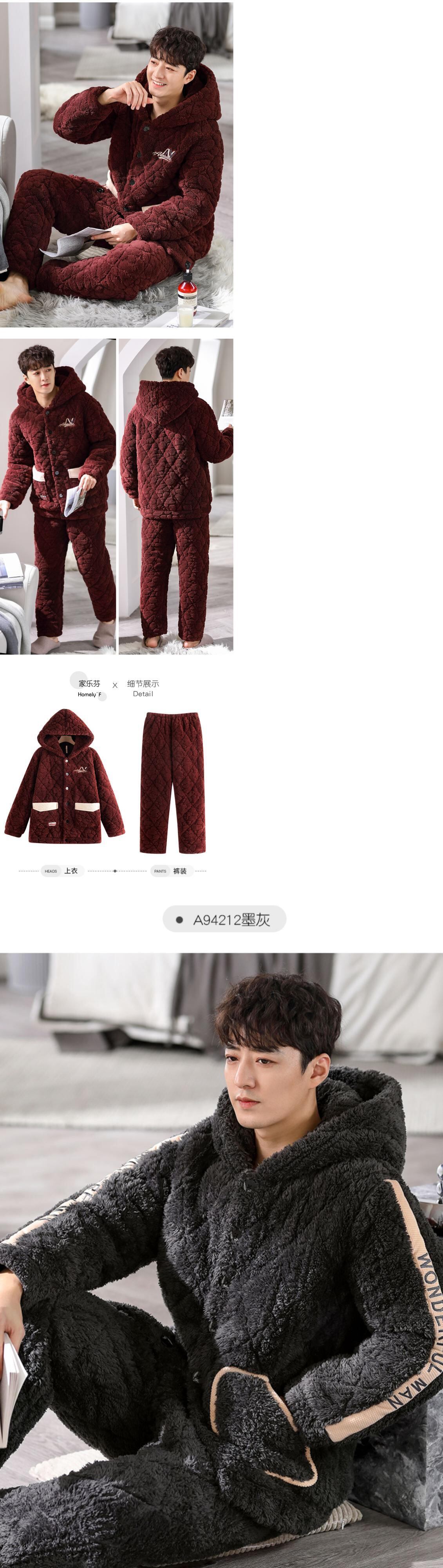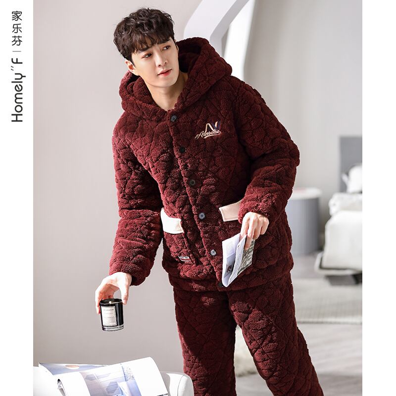 パジャマメンズ冬3層厚手超厚キルティングコーラルベルベットプラスベルベットフランネルホームサービス冬秋冬 jial51846953067