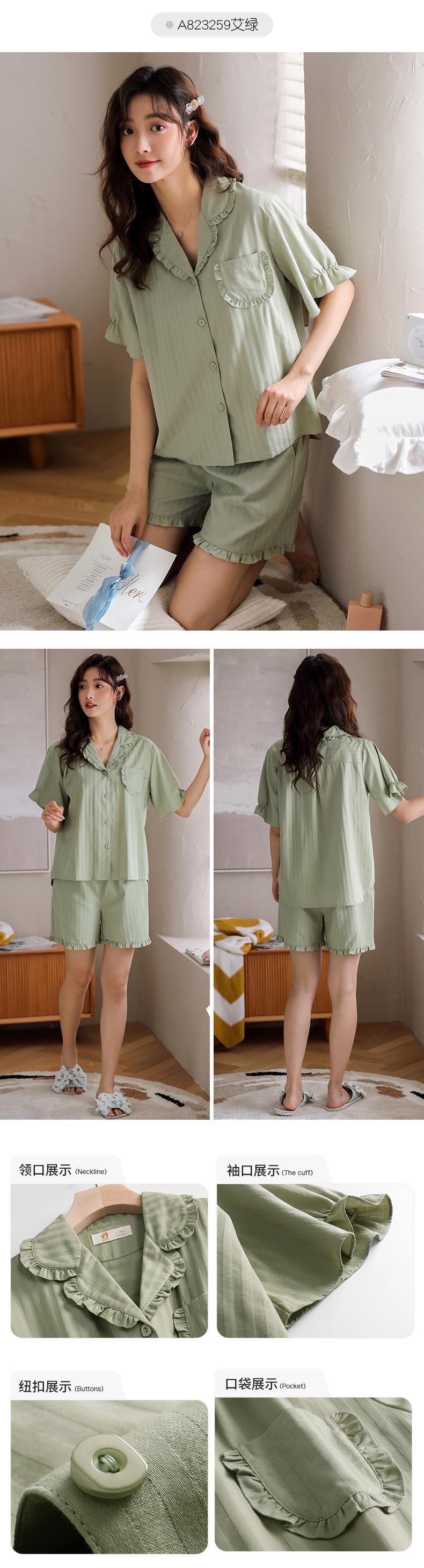 ウーブンコットンガーゼパジャマレディースサマーコットン半袖ショーツホームウェアサマーシンコットンプリンセススタイル jial70567440516