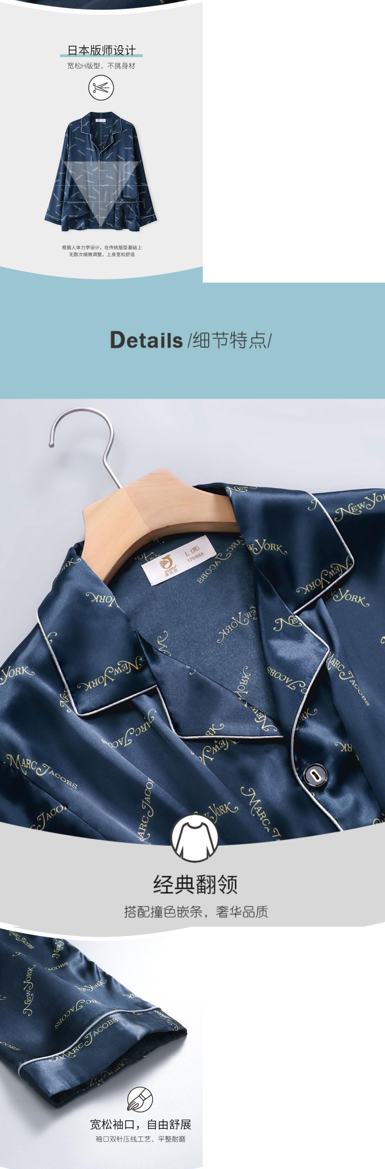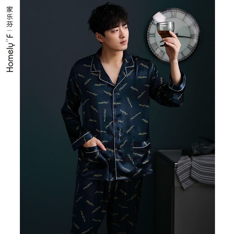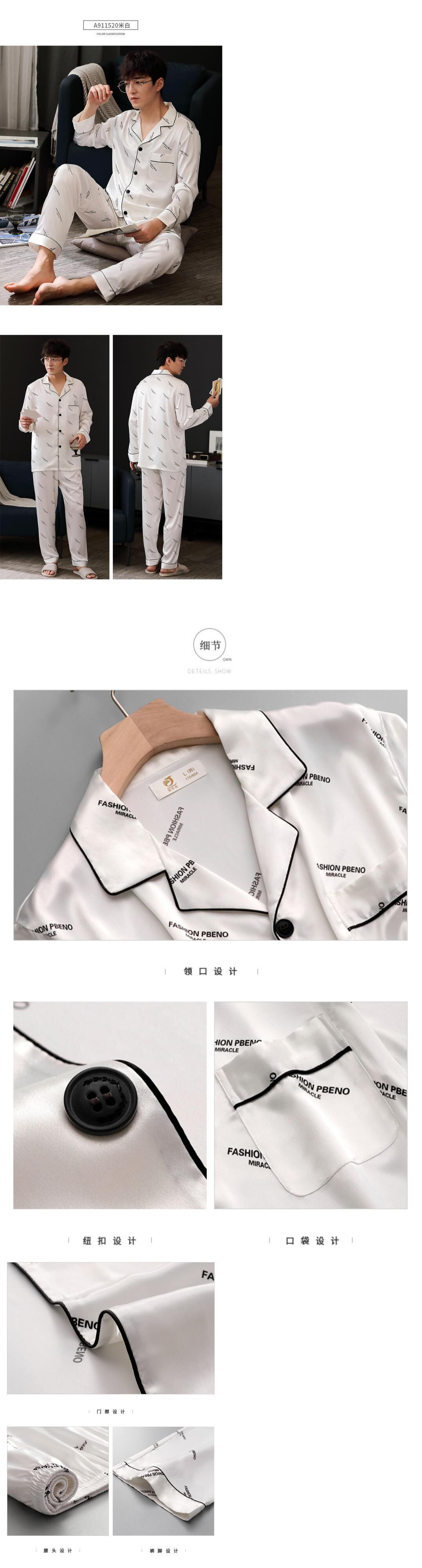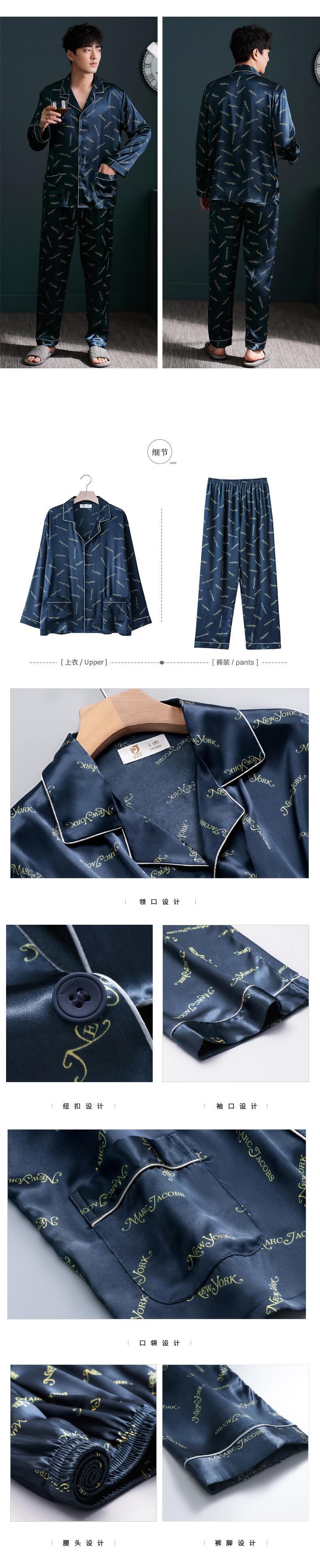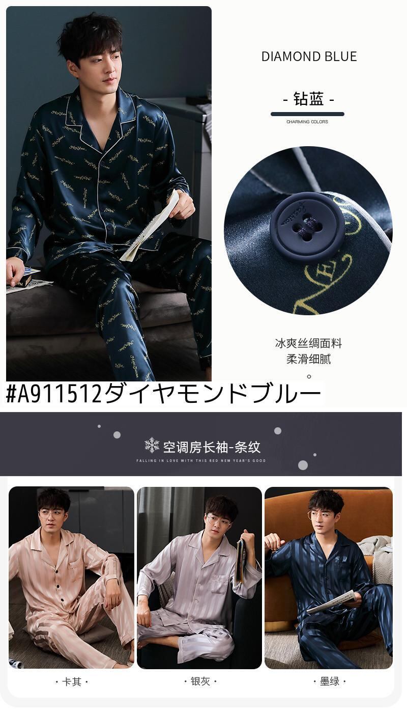パジャマメンズ春夏夏シルクアイスシルク長袖家庭服春秋薄手シミュレーションシルクツーピーススーツ jial13355847743