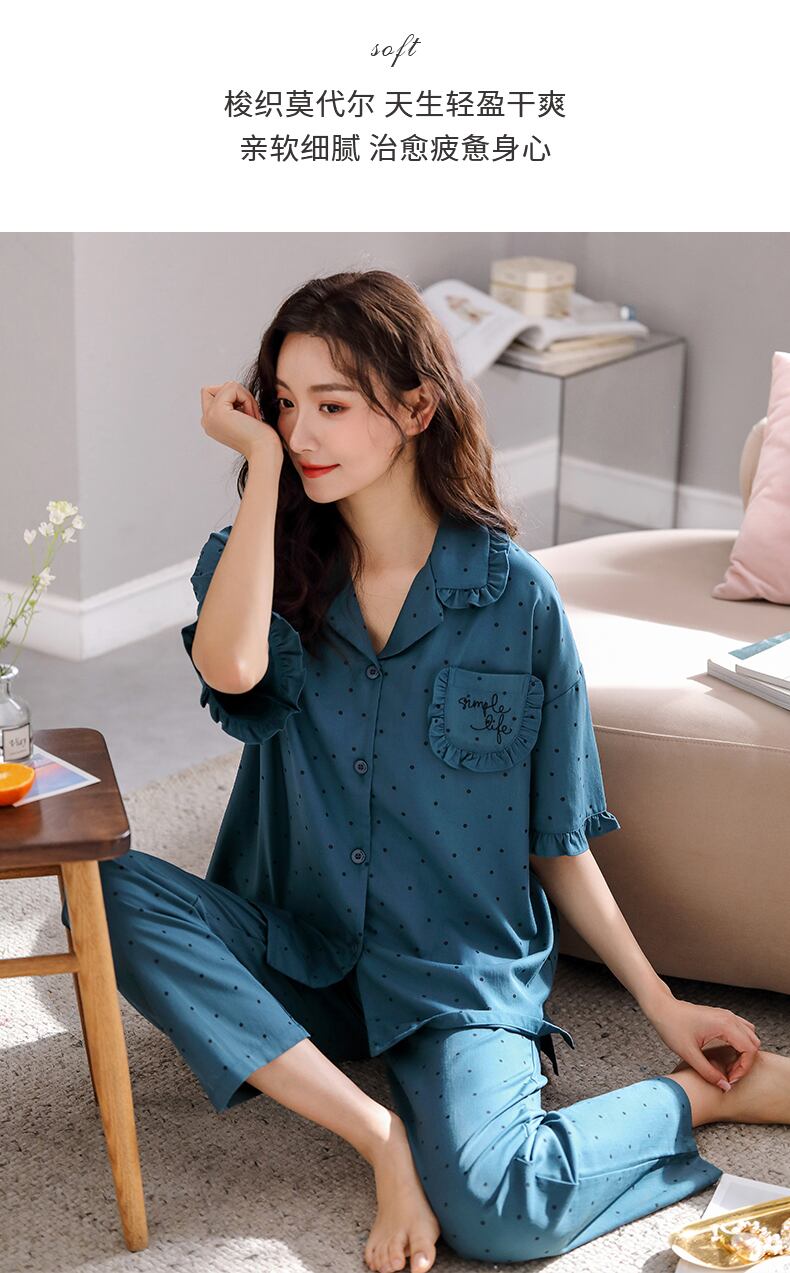 パジャマレディース夏レンチングモーダル半袖パンツホームサービス夏アイスシルク薄片かわいい甘いese jial19620751599