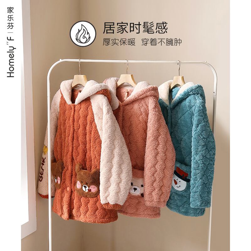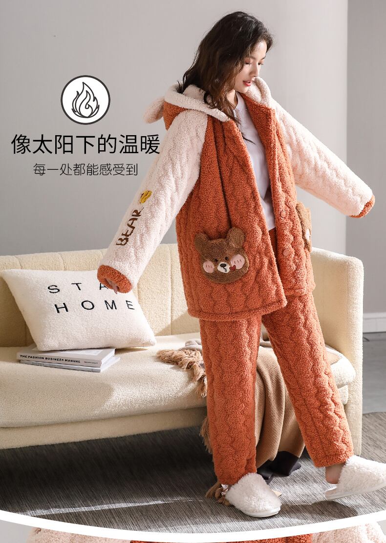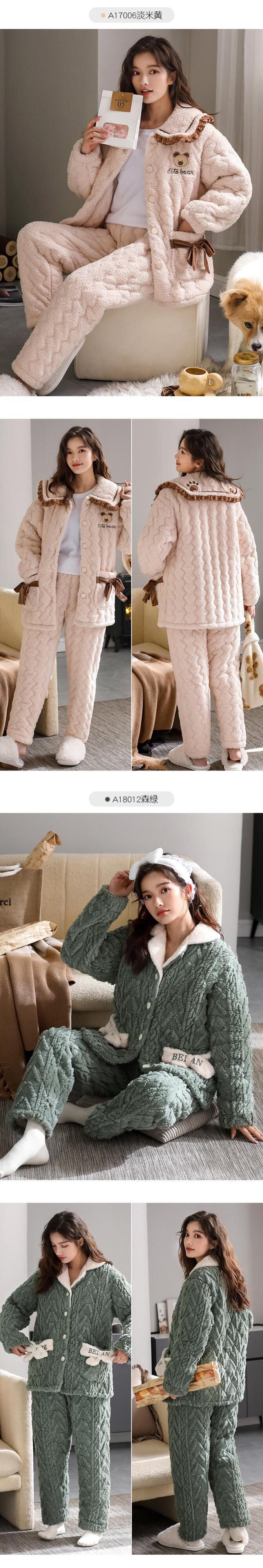 パジャマの女性の冬の3層の厚くキルティングジャケットコーラルフリースとベルベットフランネルの家庭用品秋と冬の長い冬 jial25094467581