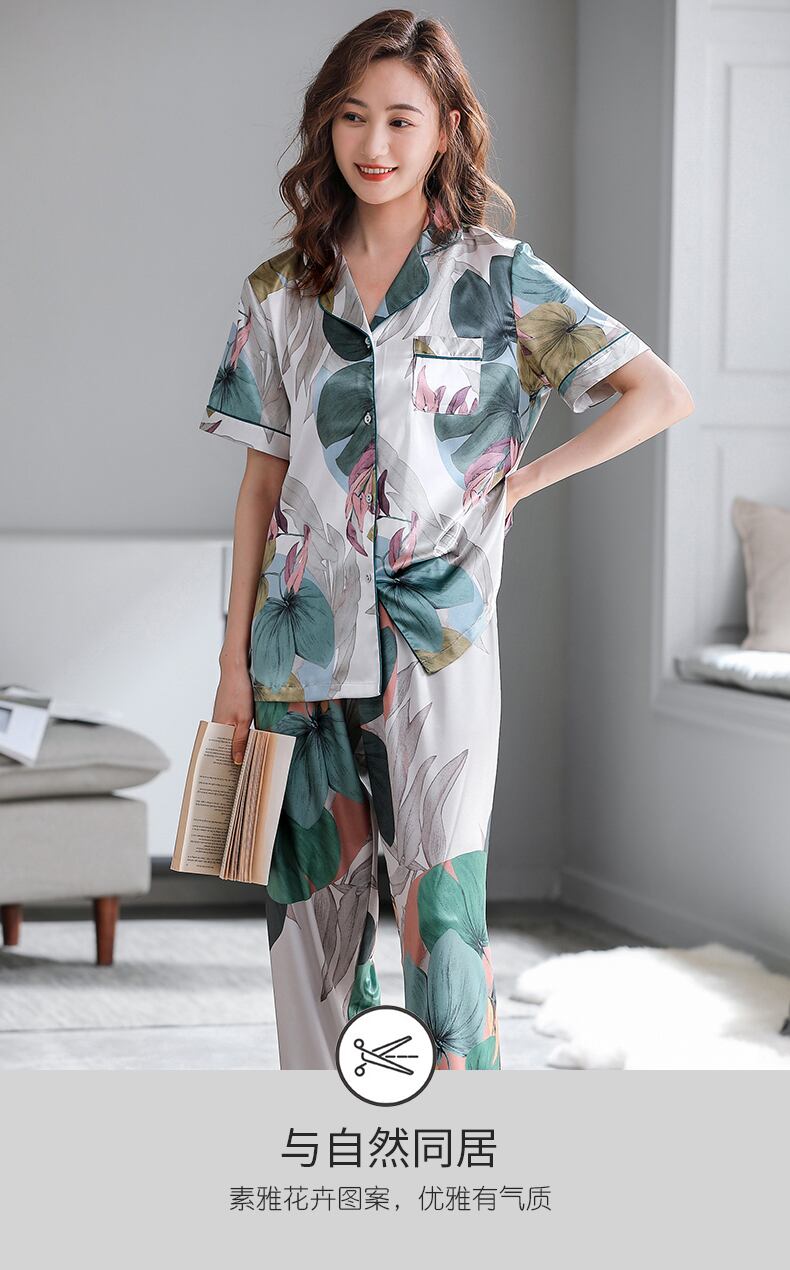 パジャマレディースサマーシルクアイスシルク半袖パンツホームウェアサマーシンシミュレーションシルクマザーラージサイズスーツ jial46116213055