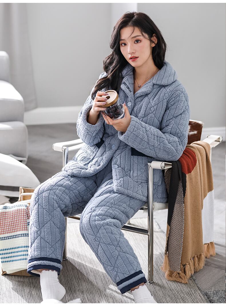 パジャマレディース冬3層厚手超厚キルティングプラスベルベットフランネルコーラルフリースホームサービス秋冬モデル jial15008975103