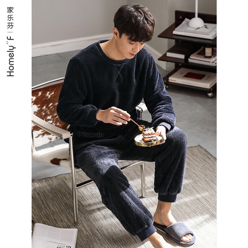 パジャマメンズウィンターフランネルシックニングとベルベットコーラルフリース秋冬モデルウィンタープルオーバーホームサービスラージサイズスーツ jial38573278980