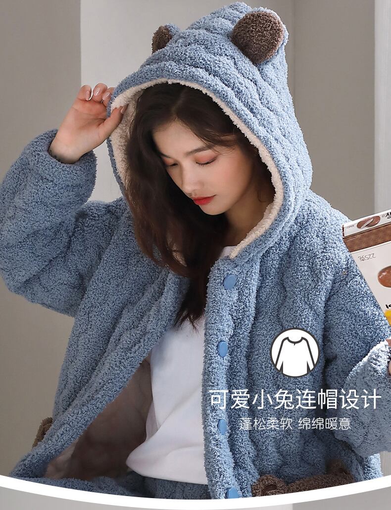 パジャマレディース冬3層厚手キルティングジャケットコーラルベルベットプラスベルベットフランネルホームサービス秋冬冬スーツ jial88277159775