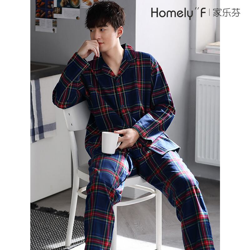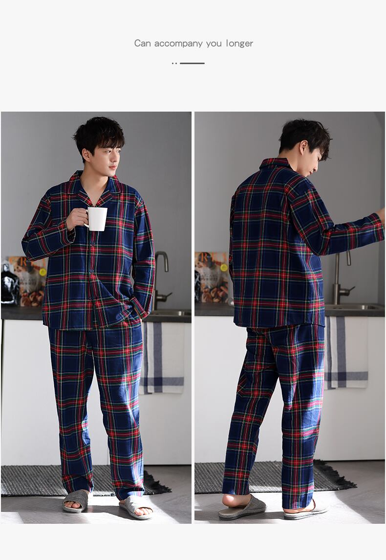織綿ガーゼパジャマメンズ春秋モデル純綿長袖家庭服メンズ薄春夏春スーツ jial8060967734