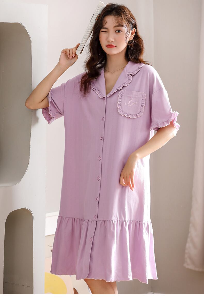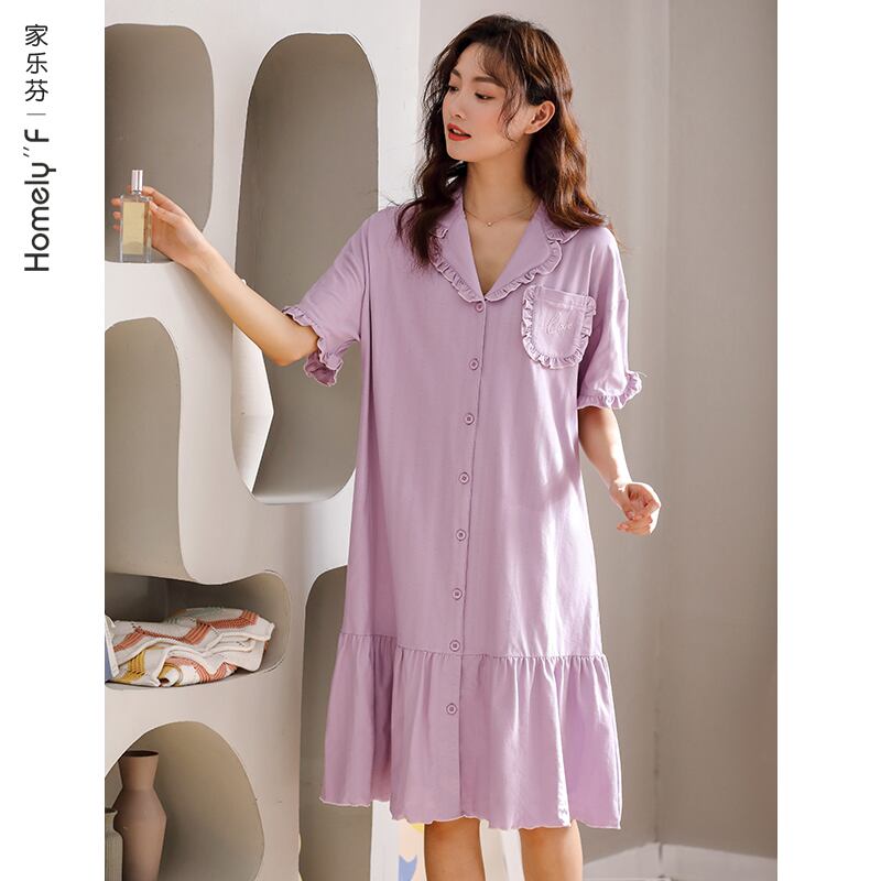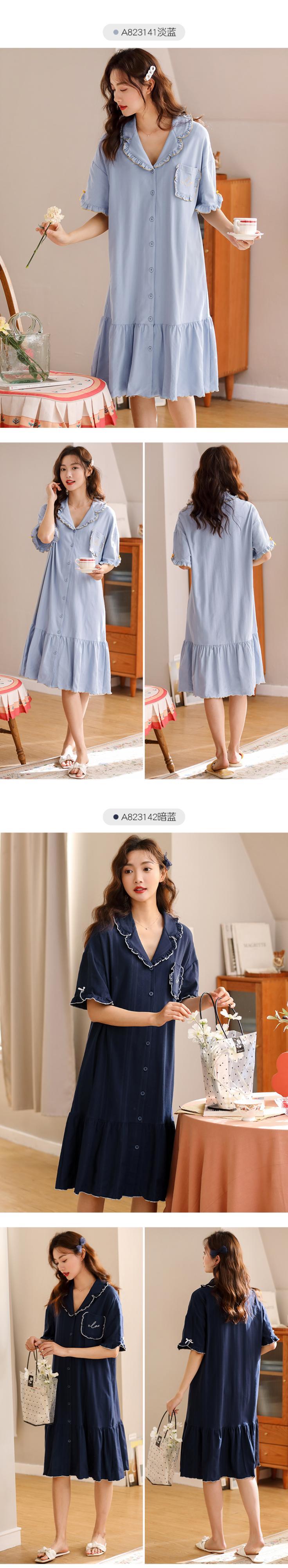 2021年新しいネグリジェレディースパジャマ夏綿半袖夏薄シャツプリンセススタイルかわいいese jial9308782216