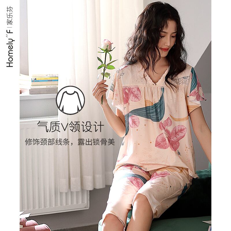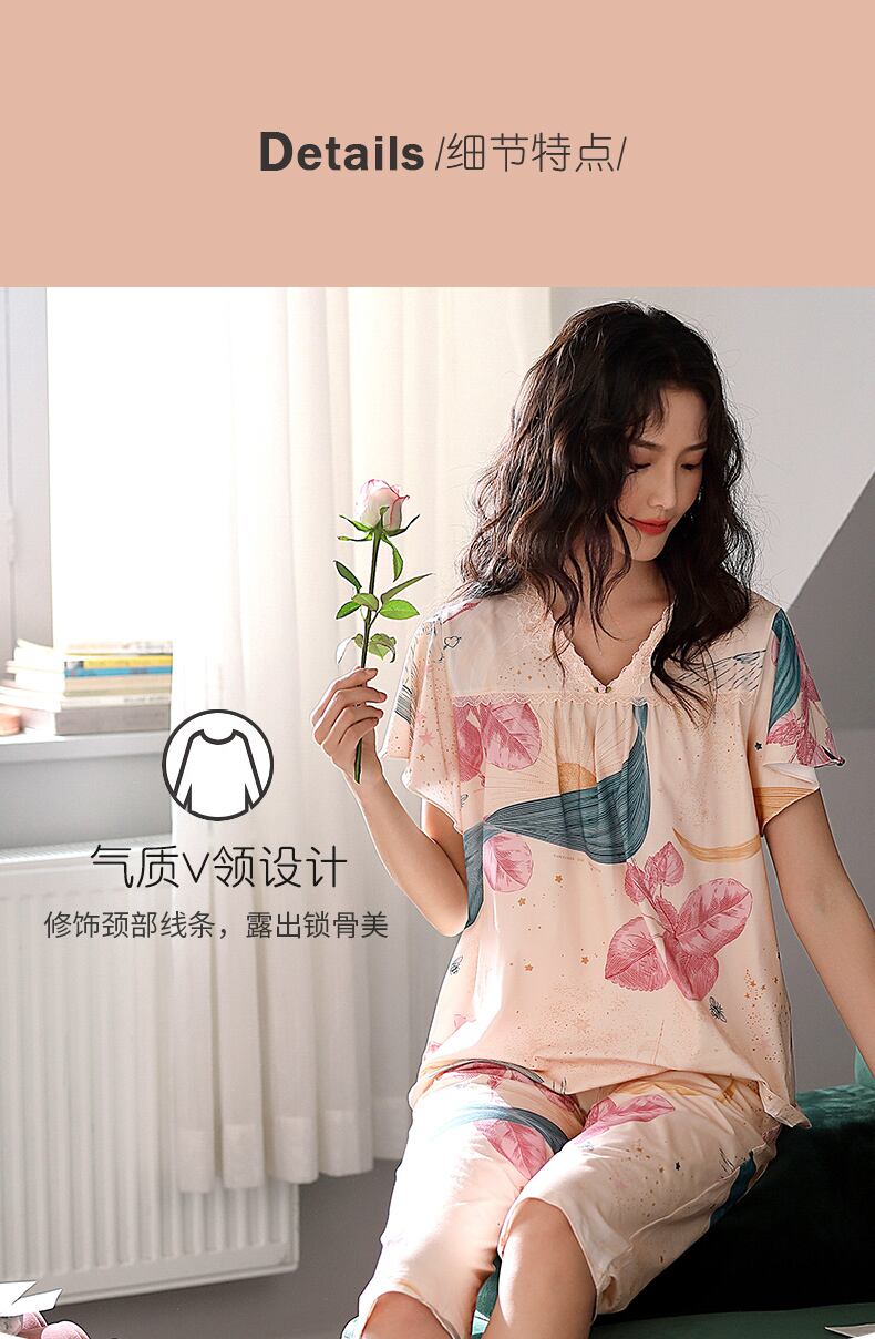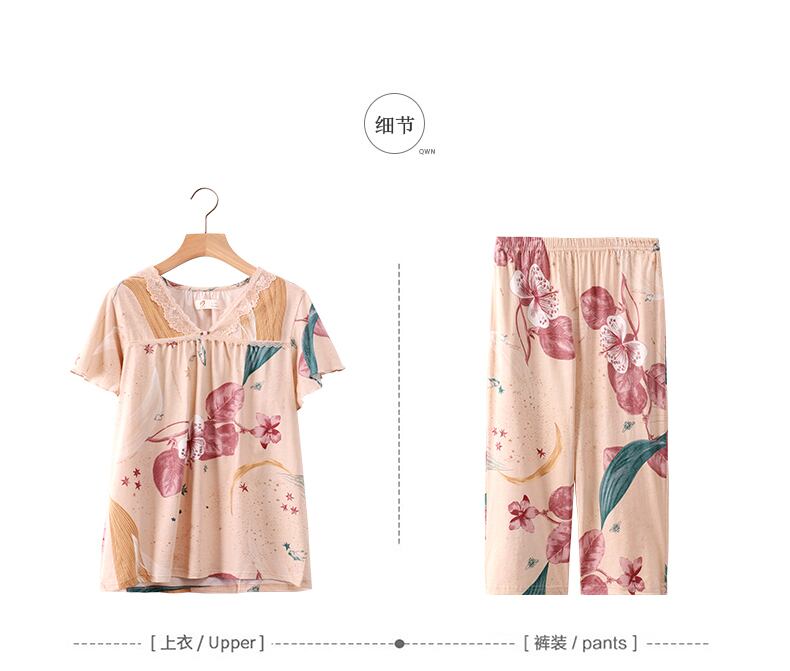 パジャマサマーコットン半袖クロップドパンツサマーシンホームウェアミドルエイジドママラージサイズツーピーススーツ jial90537221688