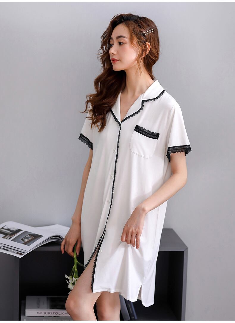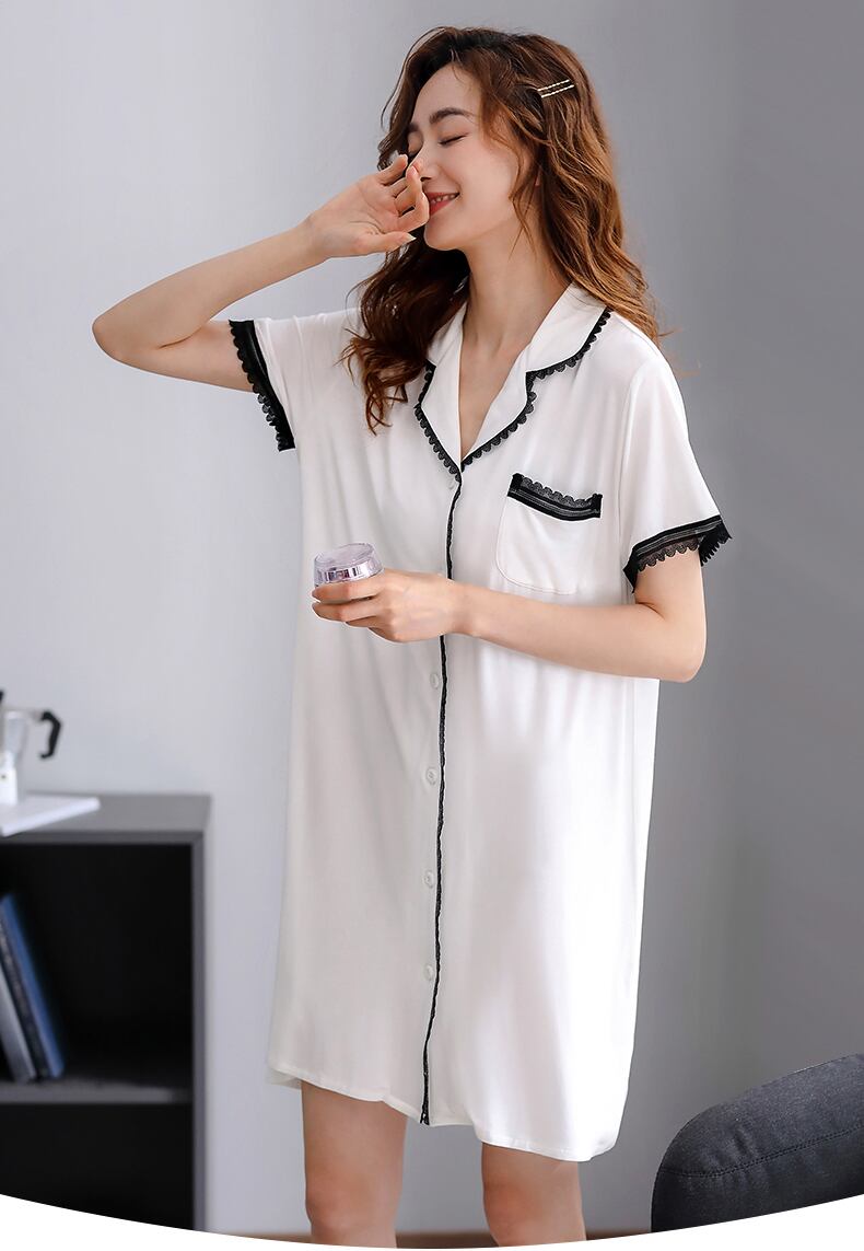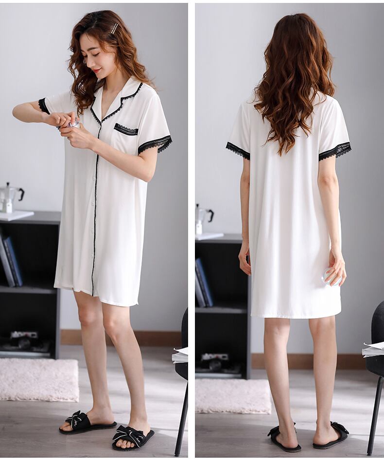 ネグリジェパジャマサマーモーダルコットンシルク半袖ホームウェアサマーシンアイスシルクロングシャツカーディガン jial47616694760