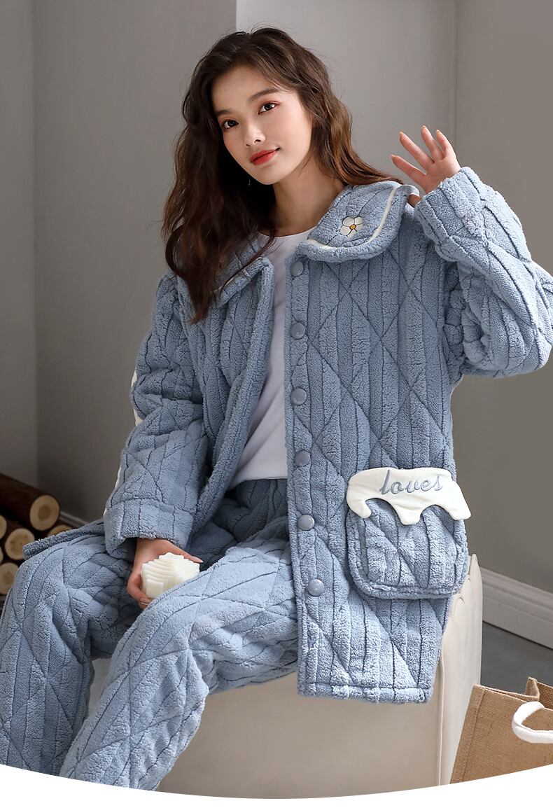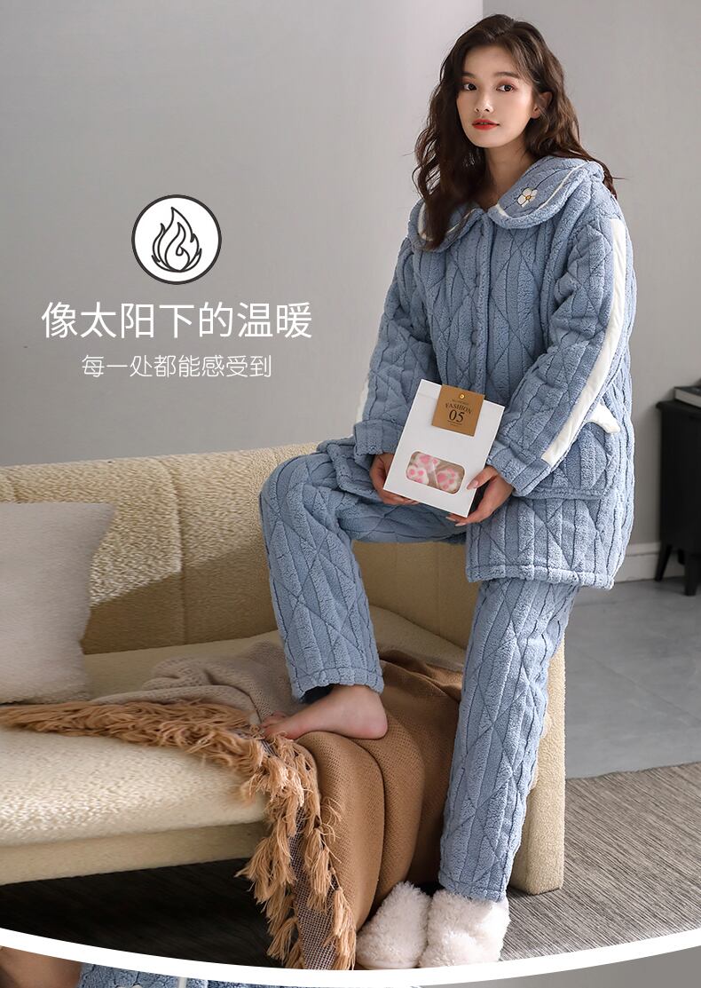 パジャマ女性の冬の3層の厚くキルティングコーラルベルベットとベルベットフランネルの家庭用品秋と冬の長い冬 jial51254890379