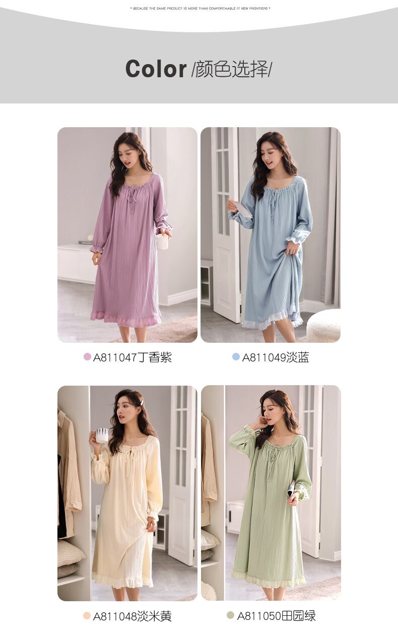 ネグリジェレディースパジャマ春と秋のモデル秋の綿長袖綿薄片春と夏の気質長い大きいサイズese jial26118646640