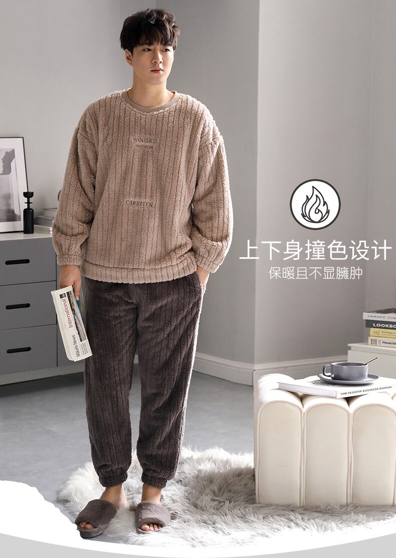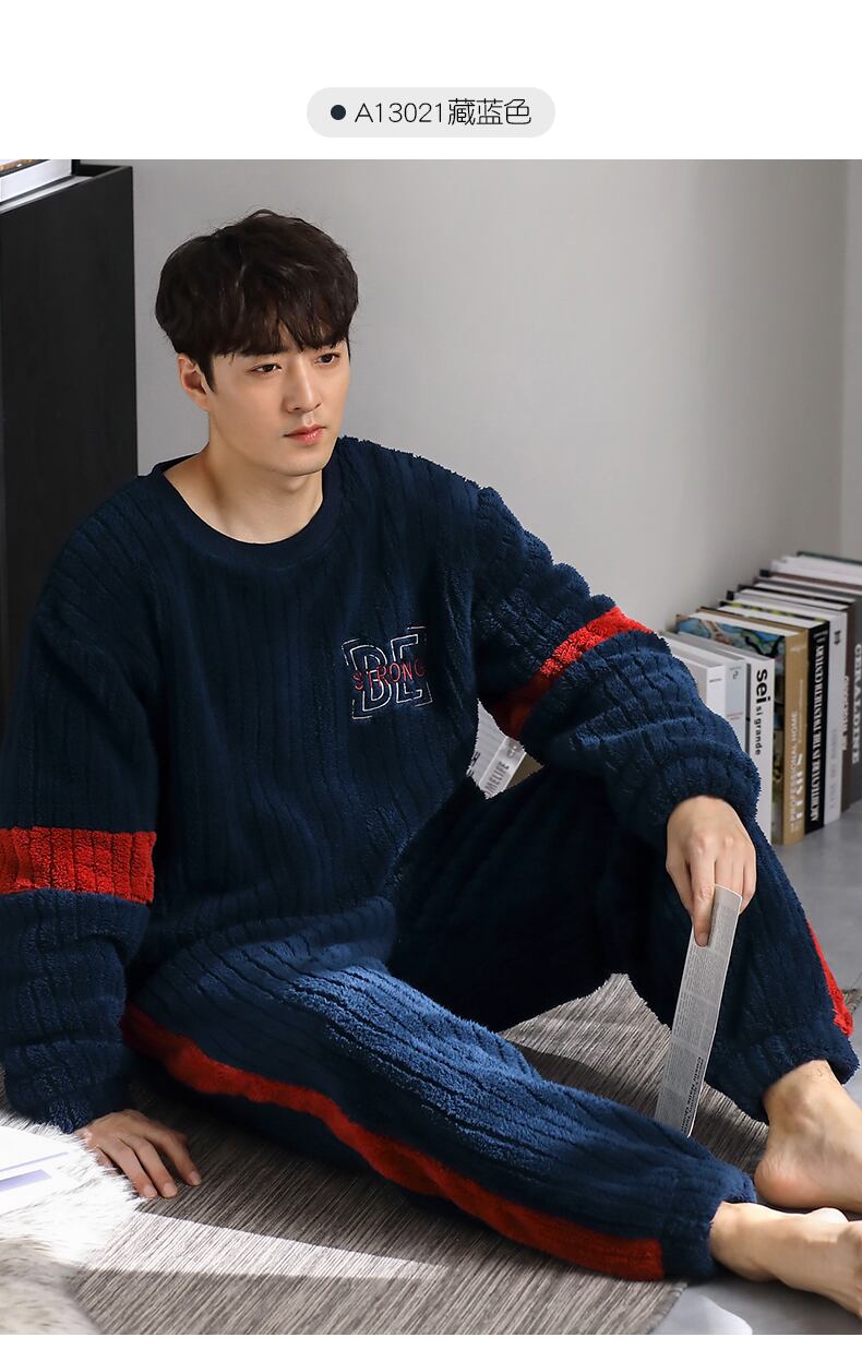 パジャマメンズウィンターフランネルシックニングとベルベットコーラルフリース秋冬モデルウィンタープルオーバーホームサービスラージサイズスーツ jial15999192064