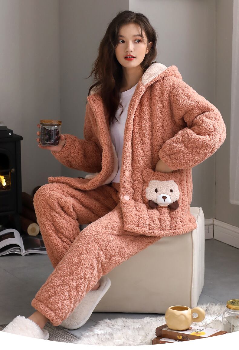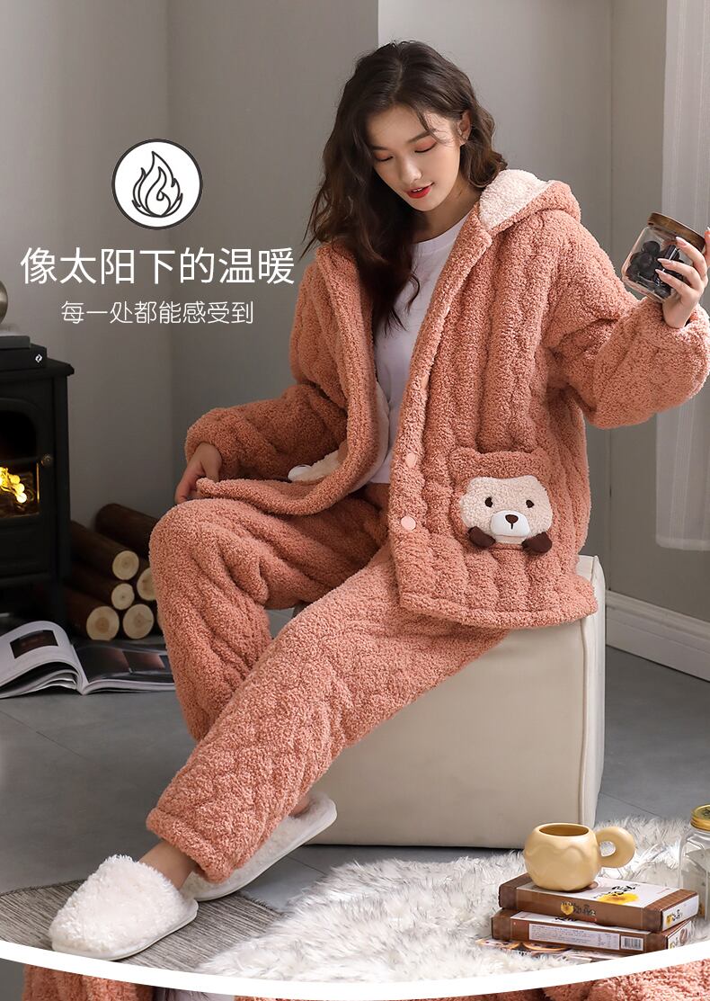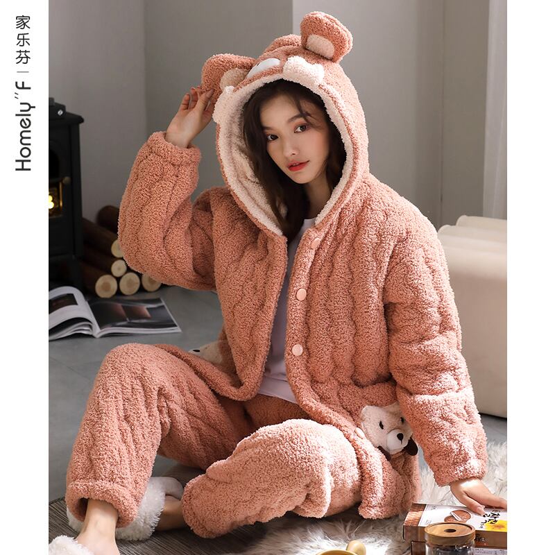 パジャマ女性の冬の3層の厚くキルティングコーラルベルベットとベルベットフランネルの家庭用品秋と冬の長い冬 jial65845803859