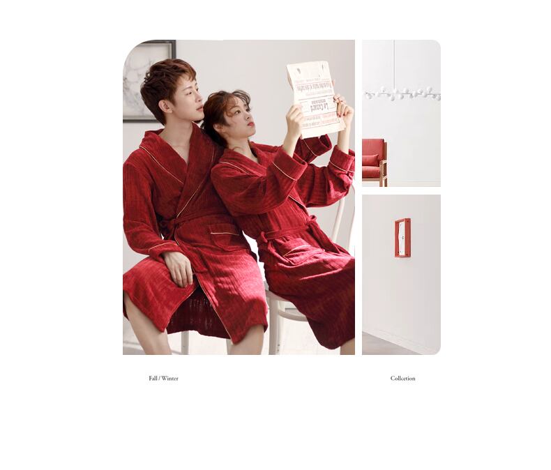 結婚式のカップルのパジャマ男性と女性のホームサービスお祝いの赤いドレッシングガウンナイトガウンバスローブお祝いのセクシーな秋と冬 jial63306925462