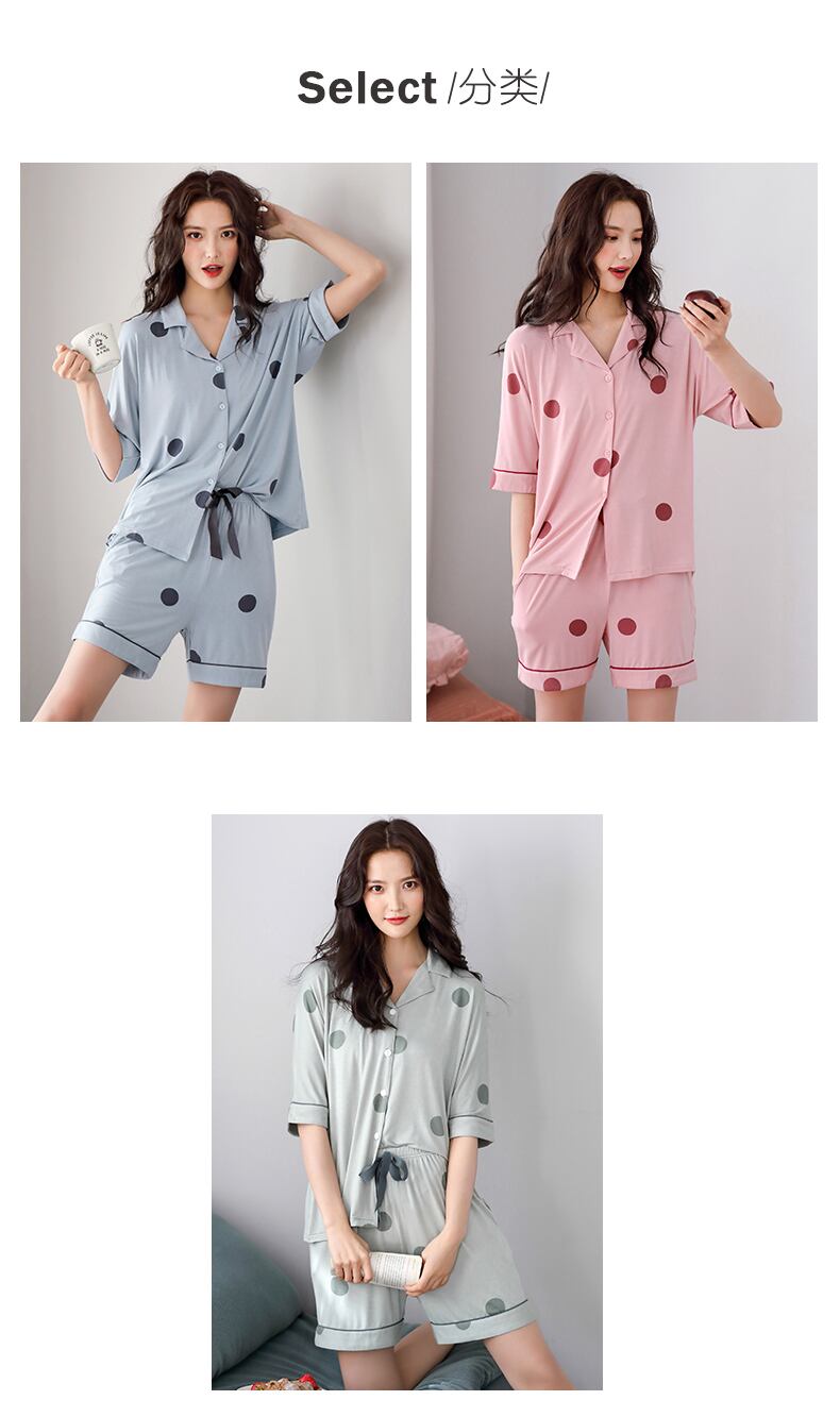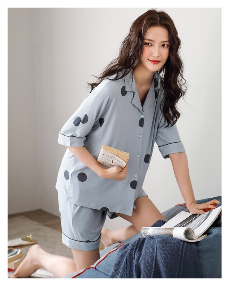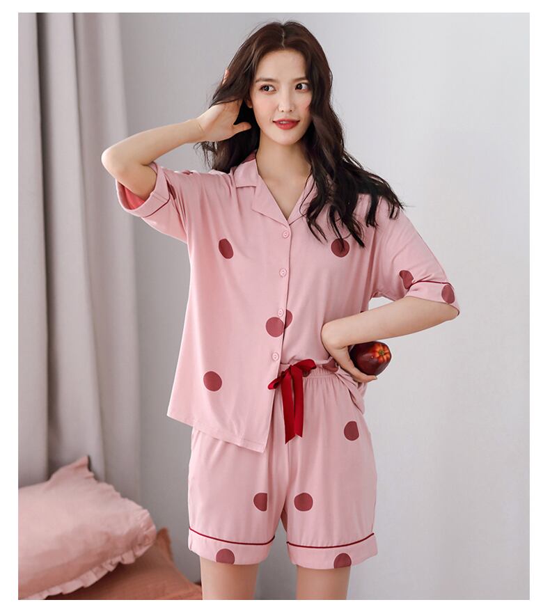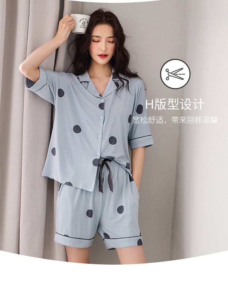 パジャマサマーモーダルコットンシルク半袖ショーツカーディガンホームウェアサマーシンイーズキュートスーツ jial83330943110