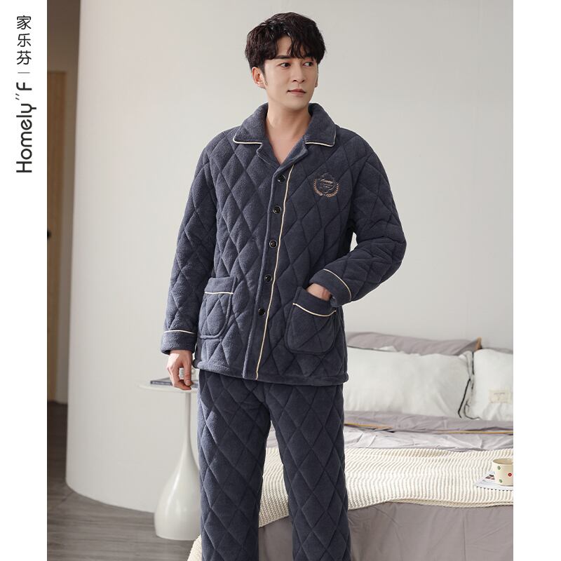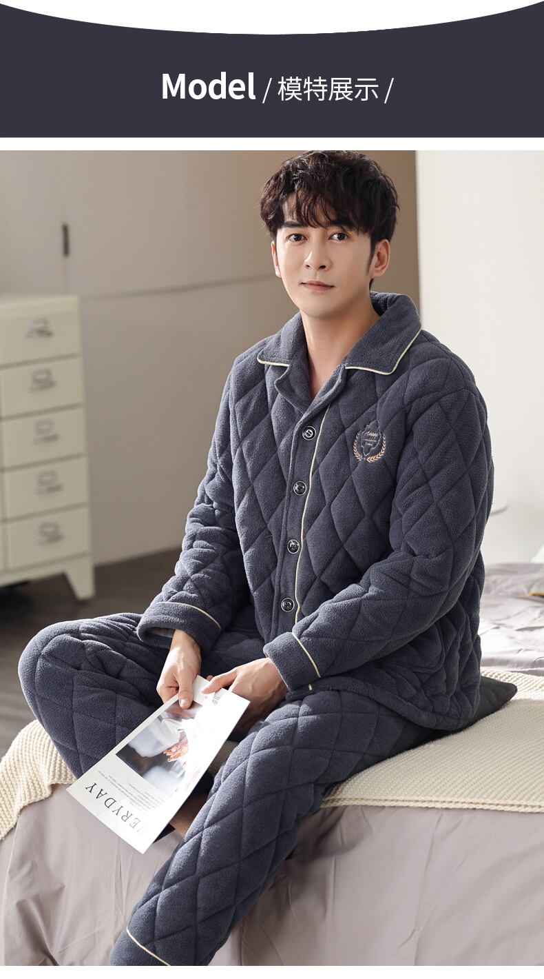 パジャマメンズ冬3層厚手超厚キルティングプラスベルベットコーラルフリースフランネルホームサービス秋冬モデル jial38320192461