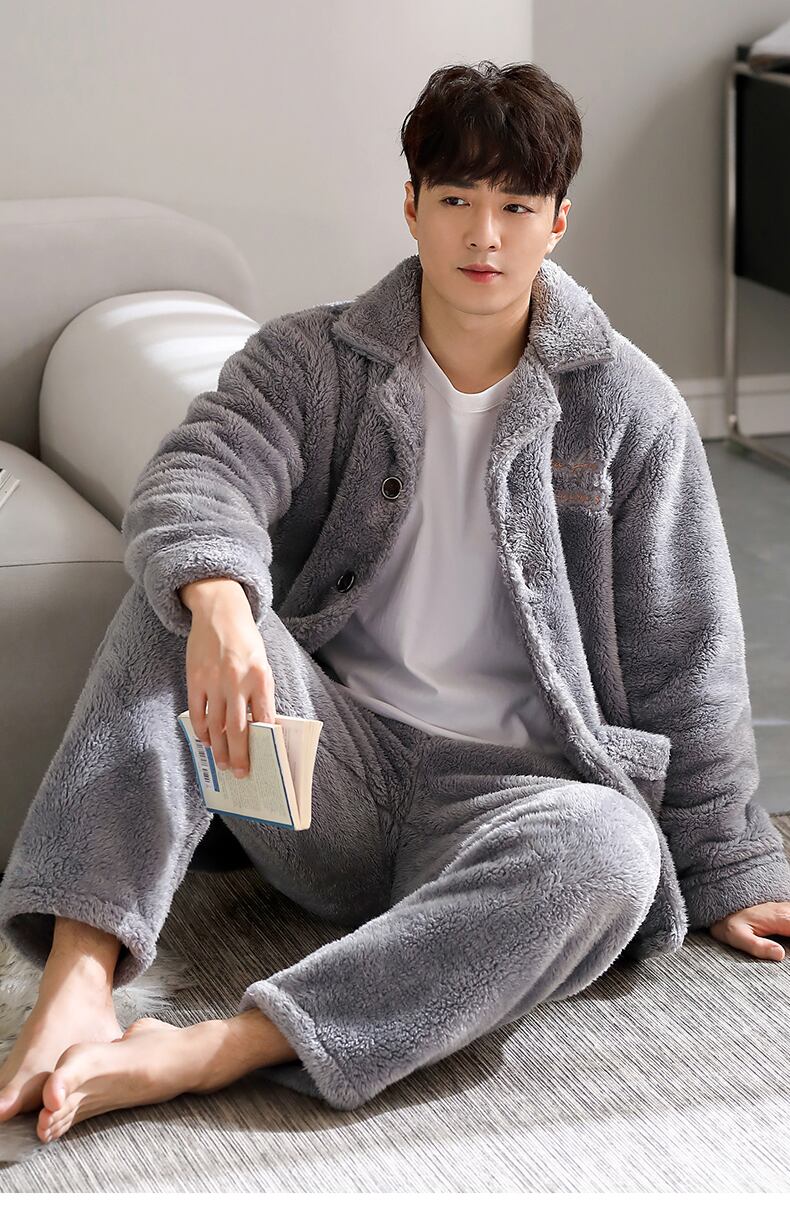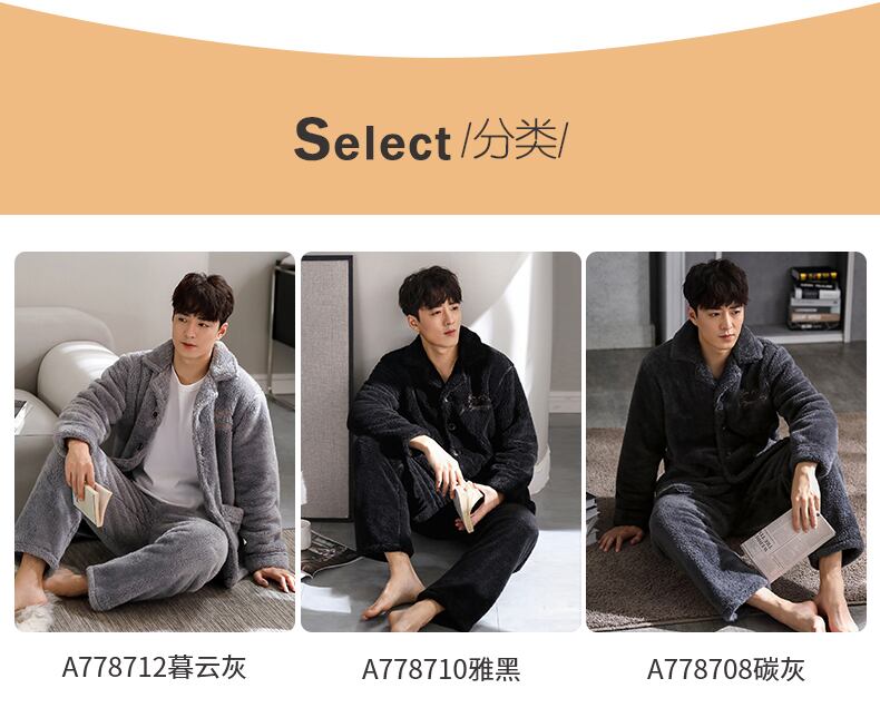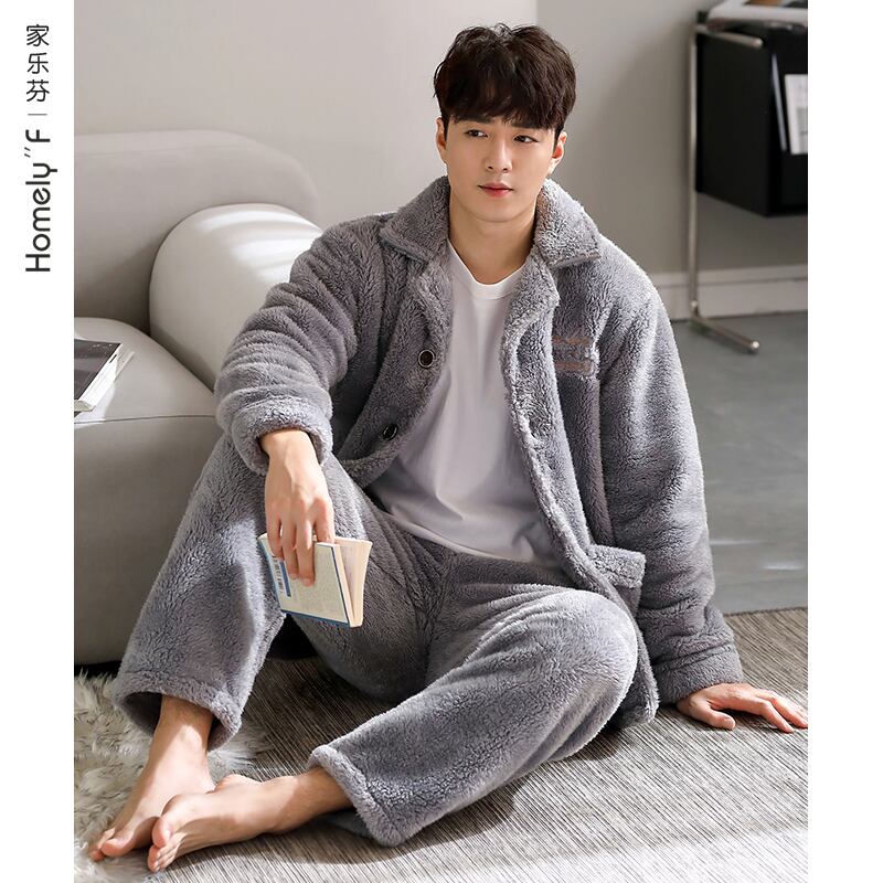 パジャマメンズウィンターフランネルシックニングとベルベットコーラルフリースホームウェアメンズラージサイズ秋冬スーツ jial20412643070