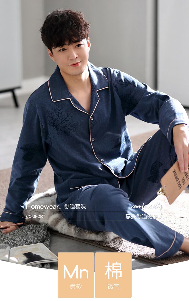 Carrefineパジャマメンズ春秋秋コットン長袖家庭服コットン秋冬四季メンズスーツ jial60252952635